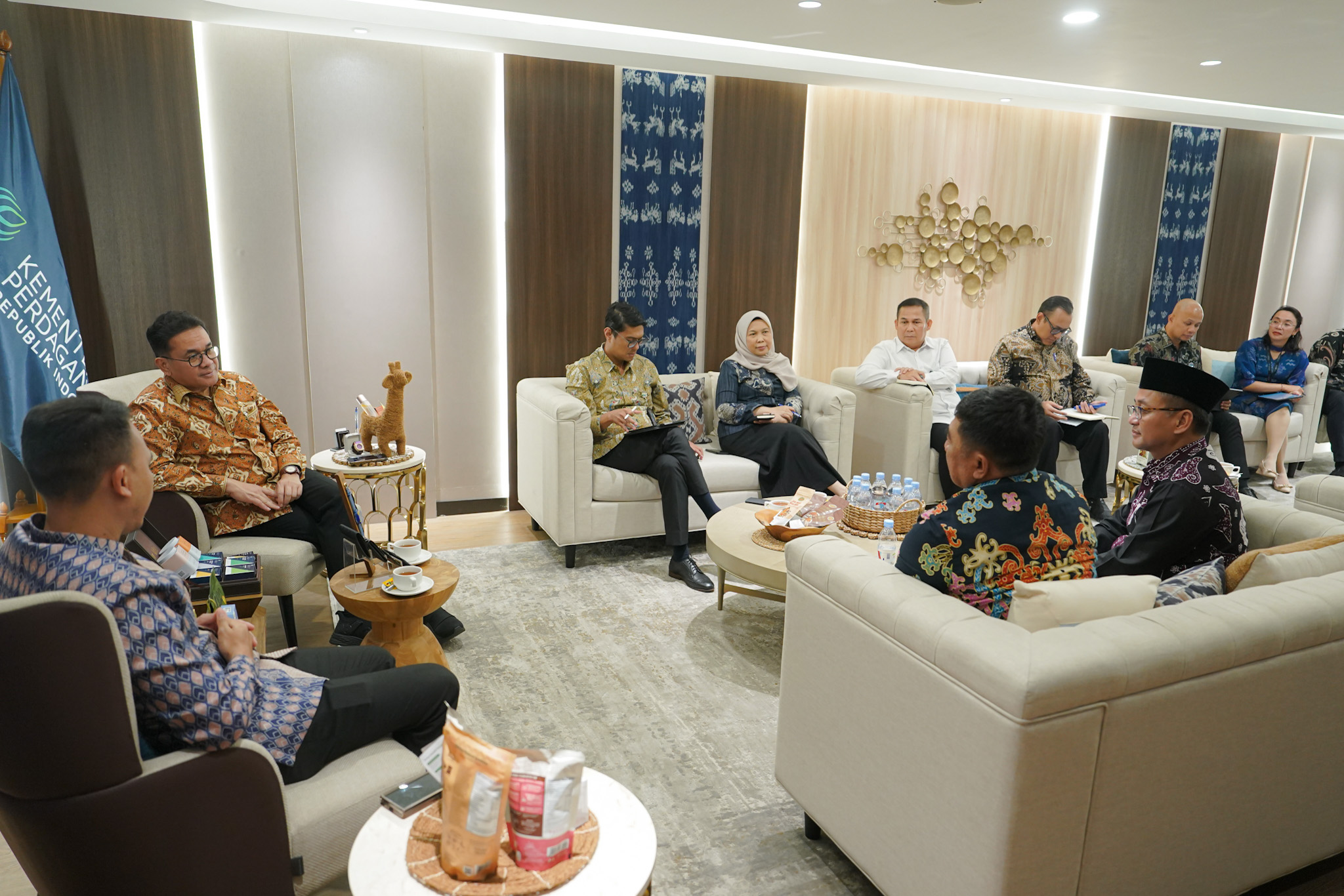 Menteri Perdagangan, Budi Santoso menerima kunjungan anggota Komisi VI DPR RI, M Husein Fadlulloh bersama Bupati Garut, Abdusy Syakur Amin dan Bupati Tasikmalaya, Cecep Nurul Yakin di Kantor Kementerian Perdagangan, Jakarta, Selasa (11 Nov).