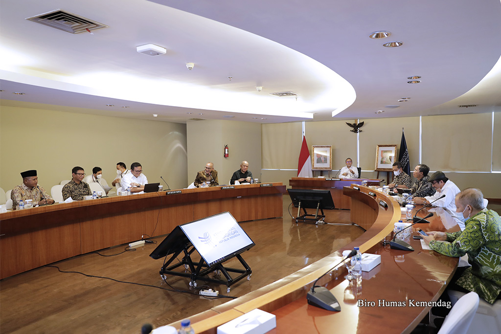 Menteri Perdagangan, Zulkifli Hasan menggelar pertemuan dengan Asosiasi Petani Kelapa Sawit Indonesia (APKASINDO) dan Gabungan Pengusaha Kelapa Sawit Indonesia (GAPKI) di Kantor Kementerian Perdagangan, Jakarta, Rabu (29 Juni).