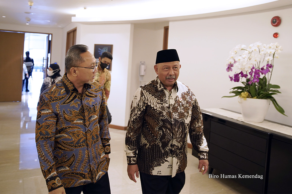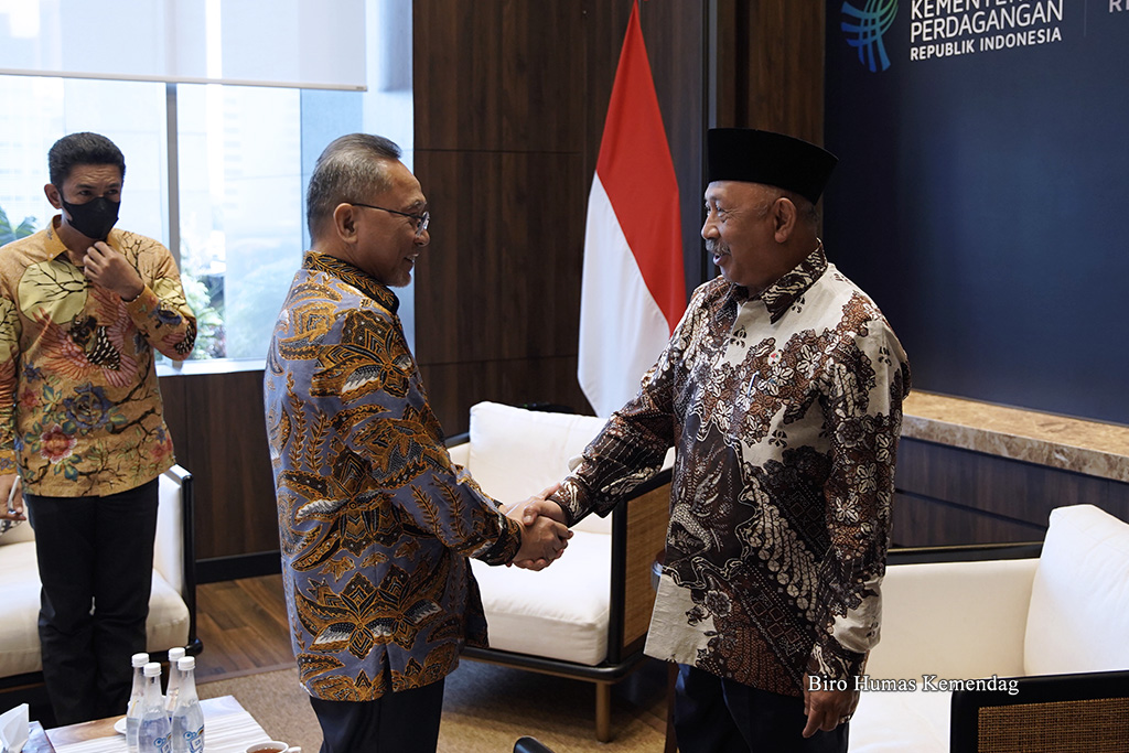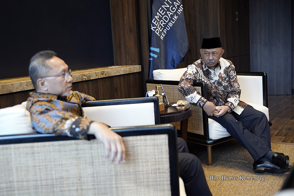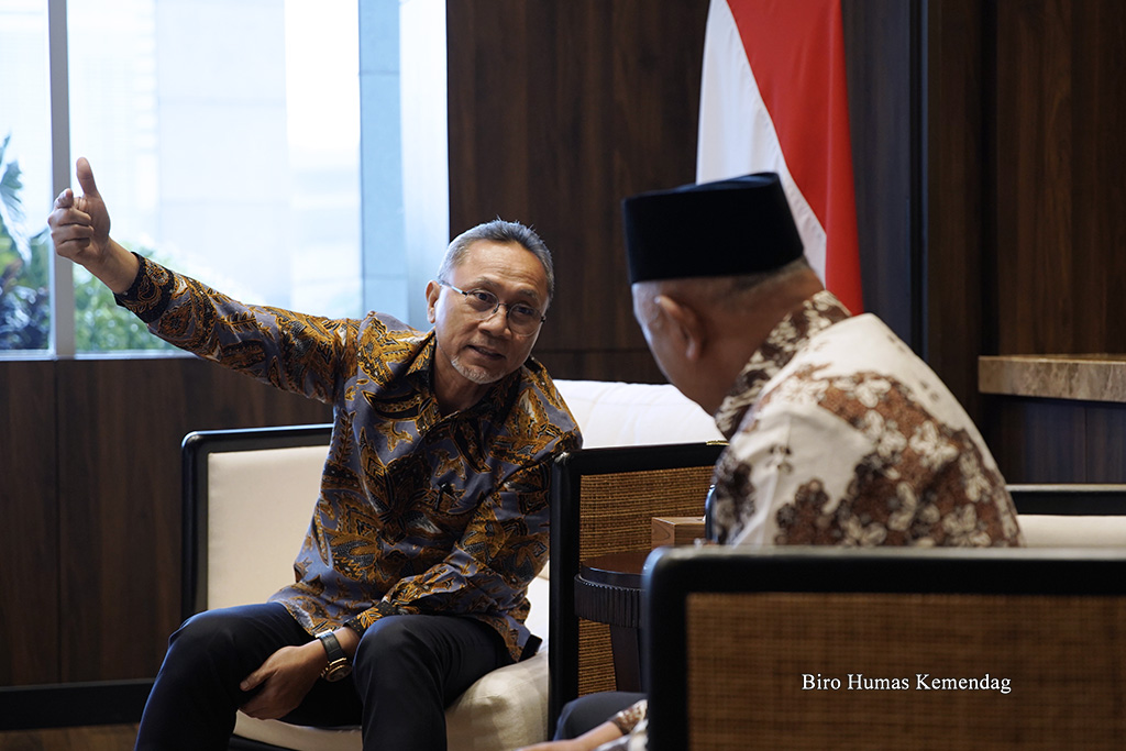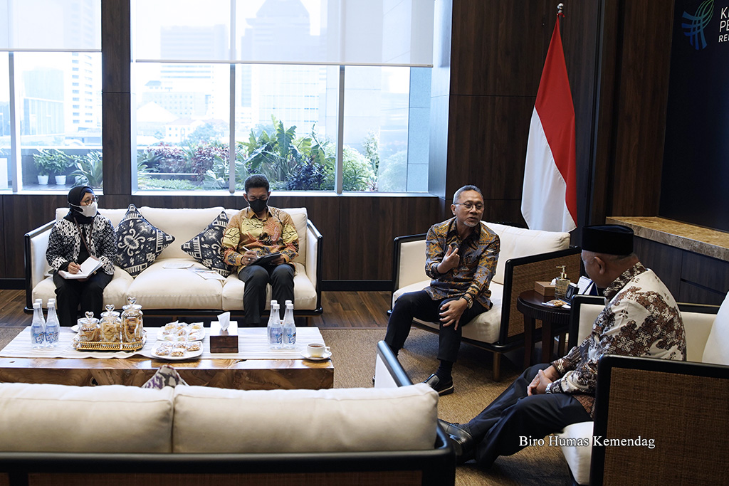Menteri Perdagangan, Zulkifli Hasan bertemu dengan Duta Besar LBBP RI Abu Dhabi, Husin Bagis di Kantor Kementerian Perdagangan, Jakarta, Kamis (14 Juli).