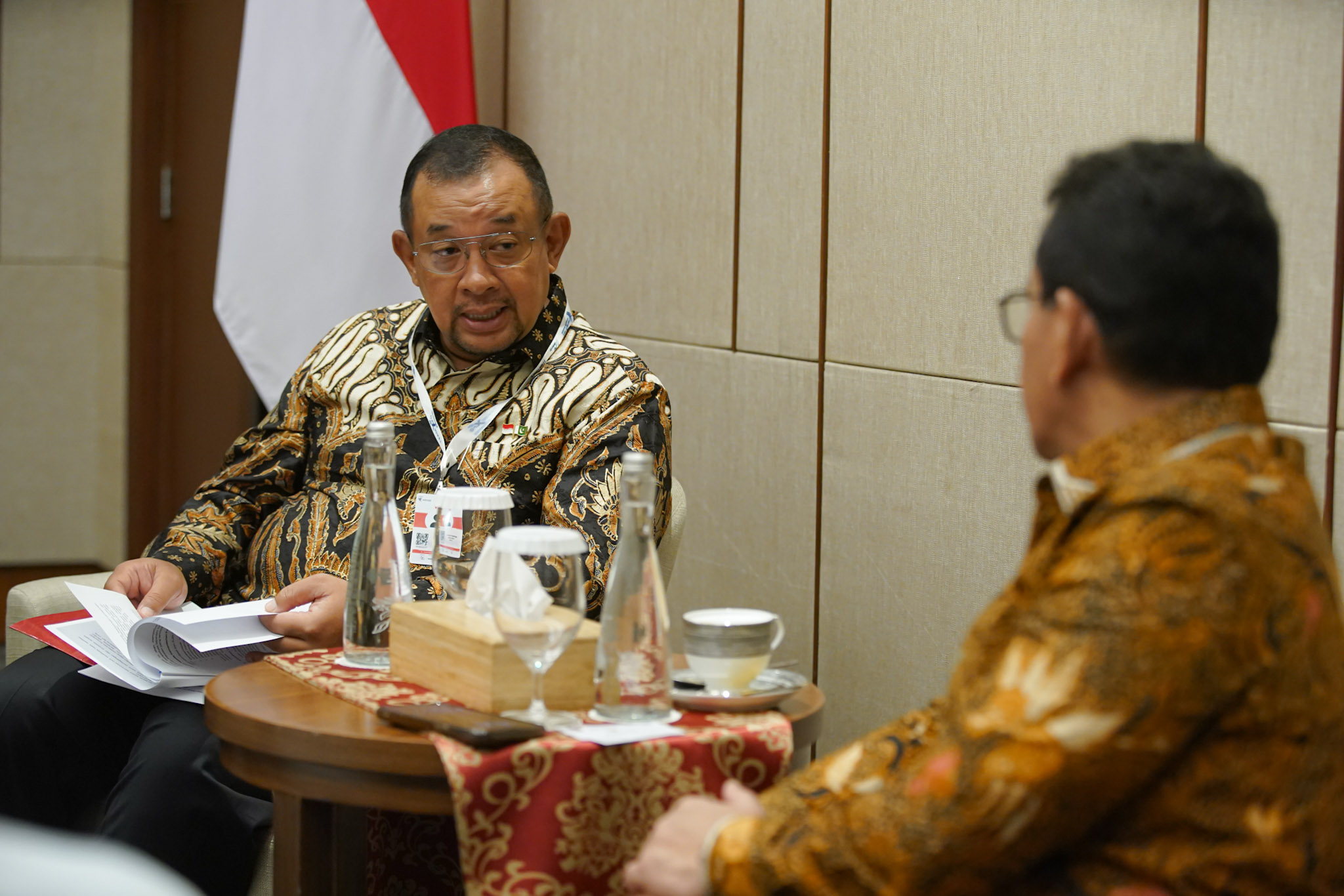 Menteri Perdagangan, Budi Santoso melalukan pertemuan dengan Duta Besar RI untuk Pakistan, Chandra Warsenanto Sukotjo di sela rangkaian Trade Expo Indonesia (TEI) ke-40 yang berlangsung di ICE BSD, Tangerang, Banten, Kamis (16 Okt).