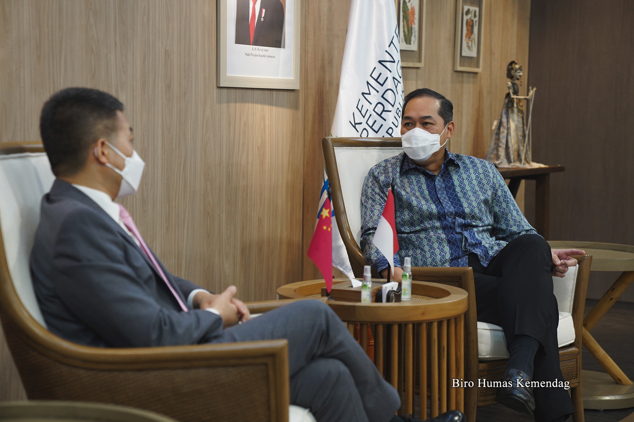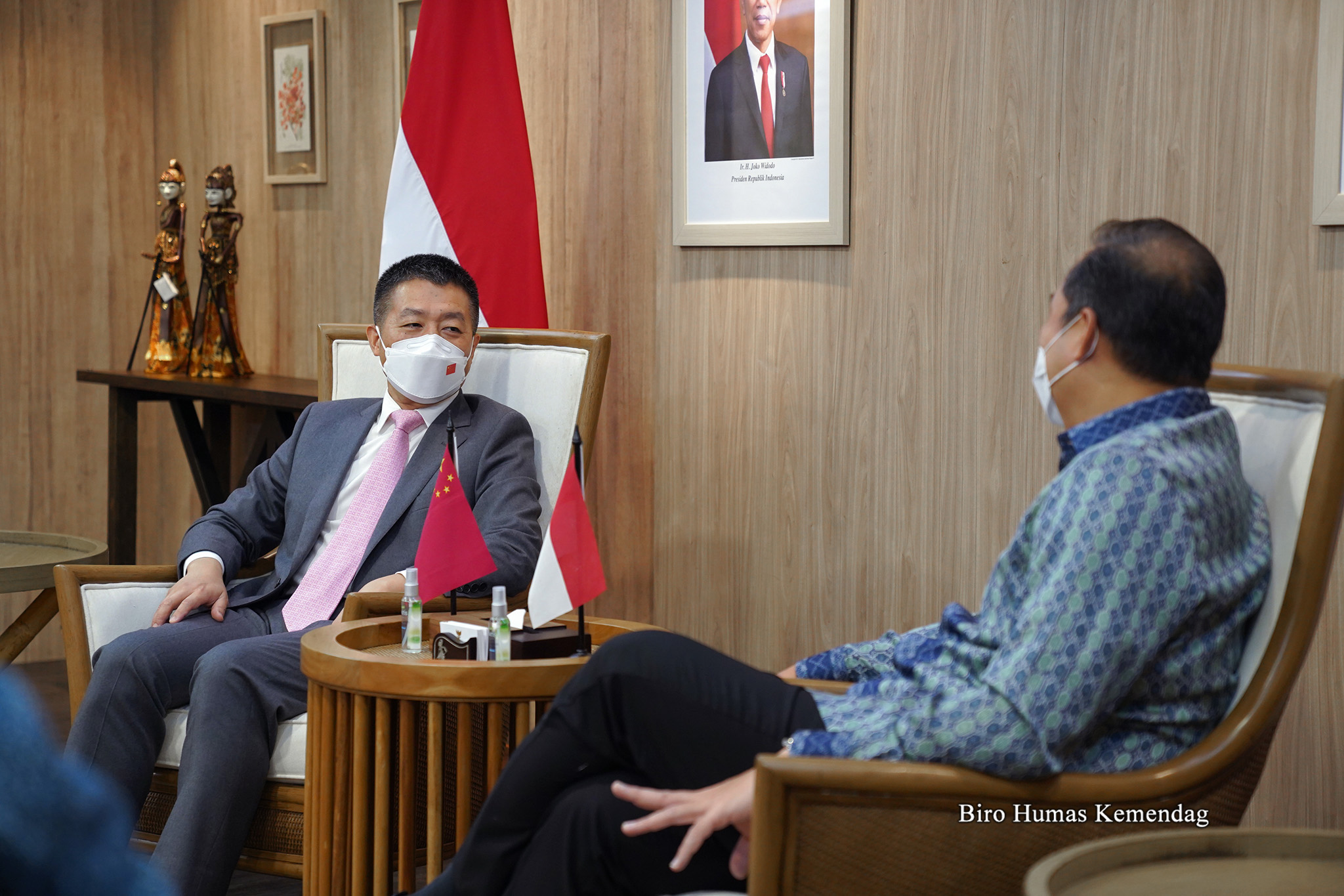Menteri Perdagangan, Muhammad Lutfi menerima kunjungan Duta Besar Tiongkok Jakarta, Lu Kang di Kantor Kemendag, Jakarta, Kamis (7 Apr).