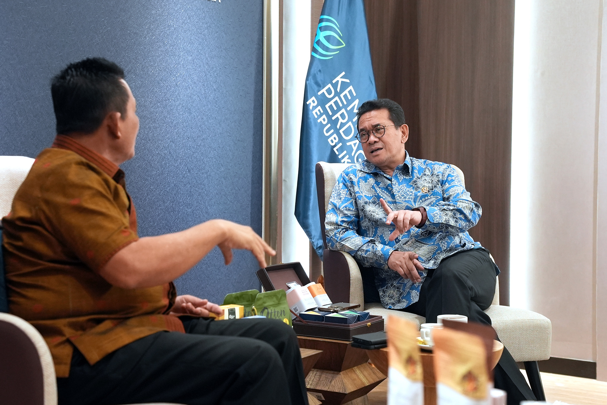 Menteri Perdagangan, Budi Santoso menerima kunjungan Gubernur Kepulauan Riau, Ansar Ahmad, di Kantor Kementerian Perdagangan, Jakarta, Jumat (12 Des).