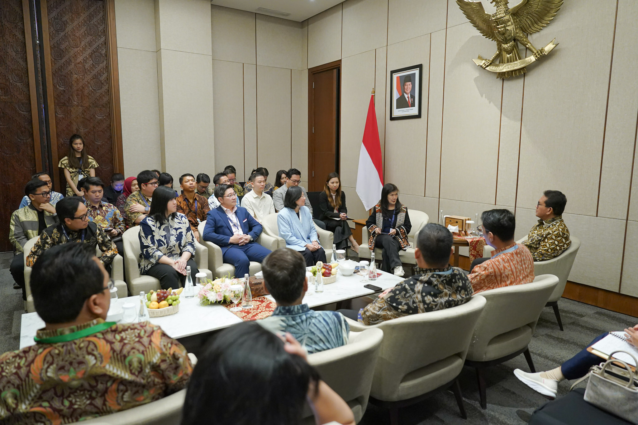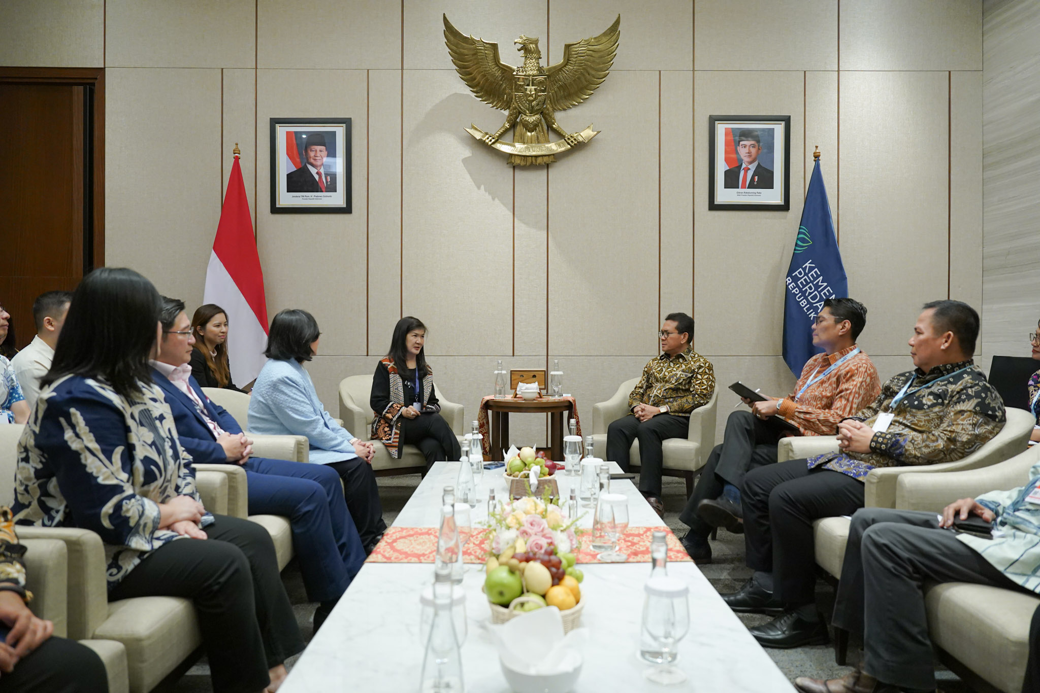 Menteri Perdagangan, Budi Santoso melalukan pertemuan dengan Ketua Umum Asosiasi Lisensi Indonesia (ASENSI), Susanty Widjaya dan delegasi World Intellectual Property Organization (WIPO) di sela rangkaian Trade Expo Indonesia (TEI) ke-40 yang berlangsung di ICE BSD, Tangerang, Banten, Jumat (17 Okt).