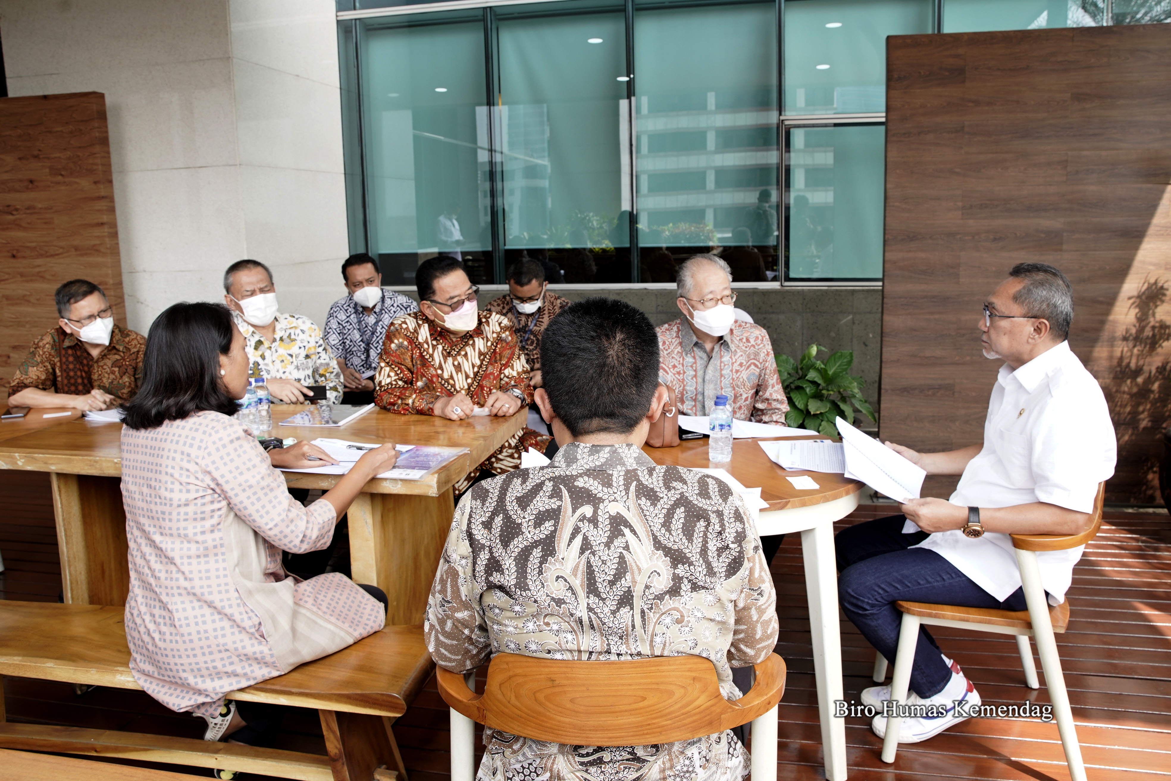 Menteri Perdagangan, Zulkifli Hasan bertemu dengan Ketua Umum Gabungan Industri Kendaraan Bermotor Indonesia (GAIKINDO), Yohannes Nangoi di Kantor Kementerian Perdagangan, Jakarta, Kamis (28 Juli).