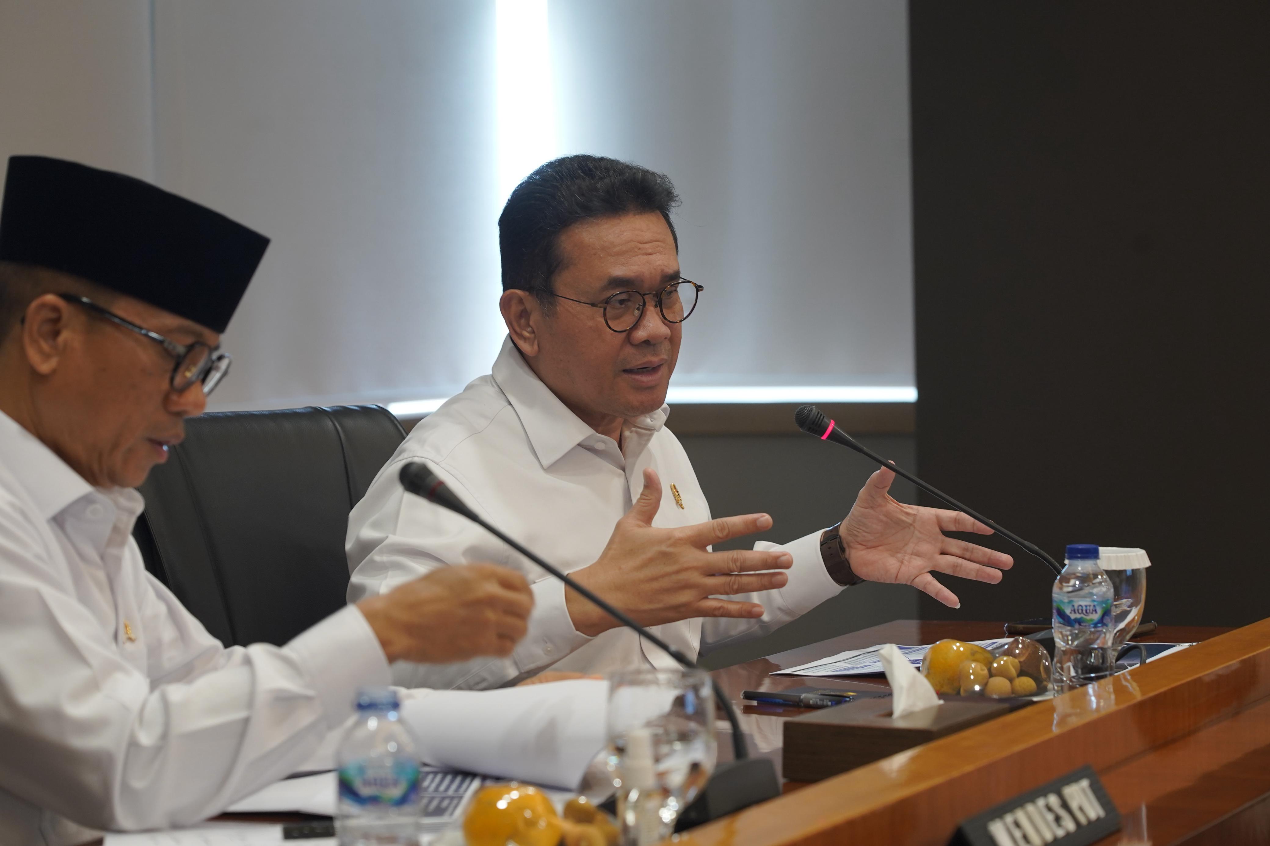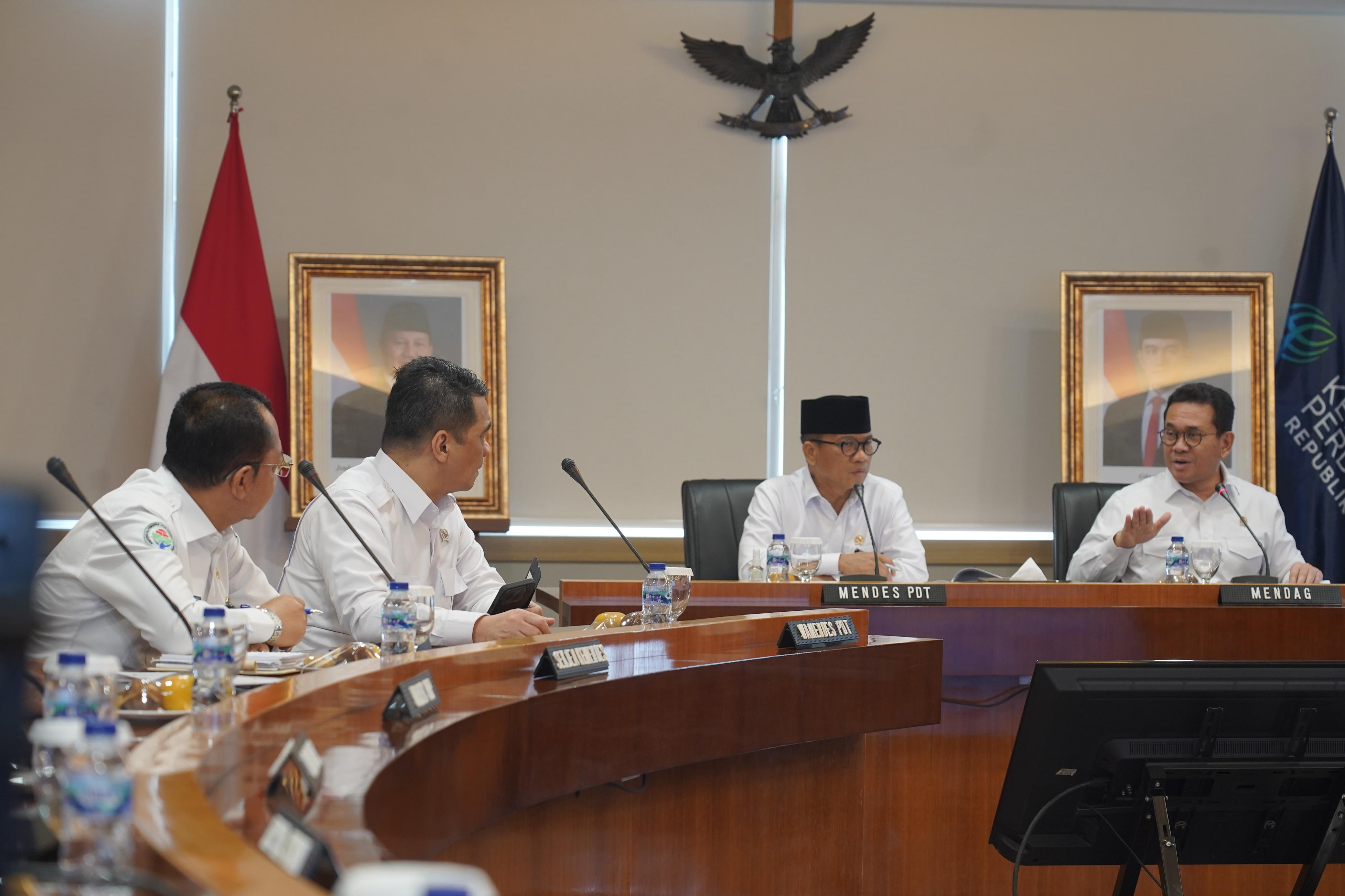 Menteri Perdagangan, Budi Santoso bertemu dengan Menteri Desa dan Pembangunan Daerah Tertinggal, Yandri Susanto di Kantor Kementerian Perdagangan, Jakarta, Senin (8 Des). Pertemuan ini membahas penguatan program Desa BISA Ekspor, sebuah inisiatif strategis yang bertujuan menghubungkan potensi desa dengan peluang pasar global.