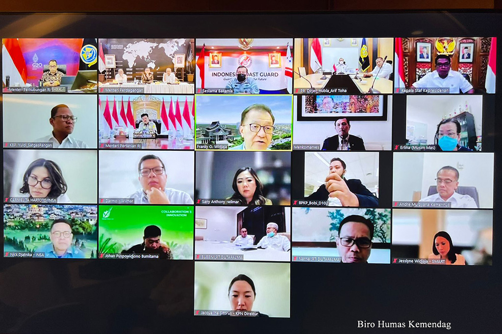Rapat yang digelar secara hibrida ini turut dihadiri oleh Kepala Staf Kepresidenan, Moeldoko; Menteri Koordinator Bidang Kemaritiman dan Investasi, Luhut Binsar Pandjaitan; Menteri Perhubungan, Budi Karya Sumadi; Menteri Pertanian; Syahrul Yasin Limpo; serta perwakilan asosiasi dan pengusaha di bidang minyak goreng.