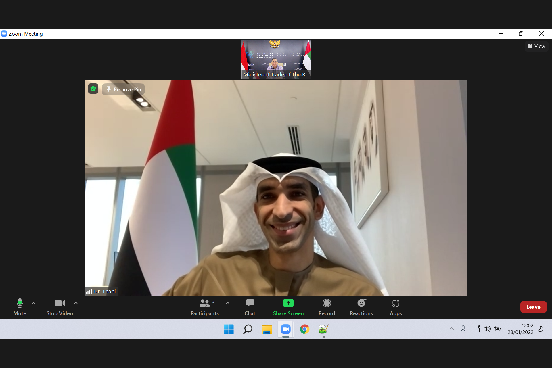 Menteri Perdagangan RI, Muhammad Lutfi mengadakan pertemuan virtual dengan Menteri Perdagangan Luar Negeri Uni Emirat Arab, Thani Ahmed Al-Zeyoudi pada Jumat (28 Jan).
