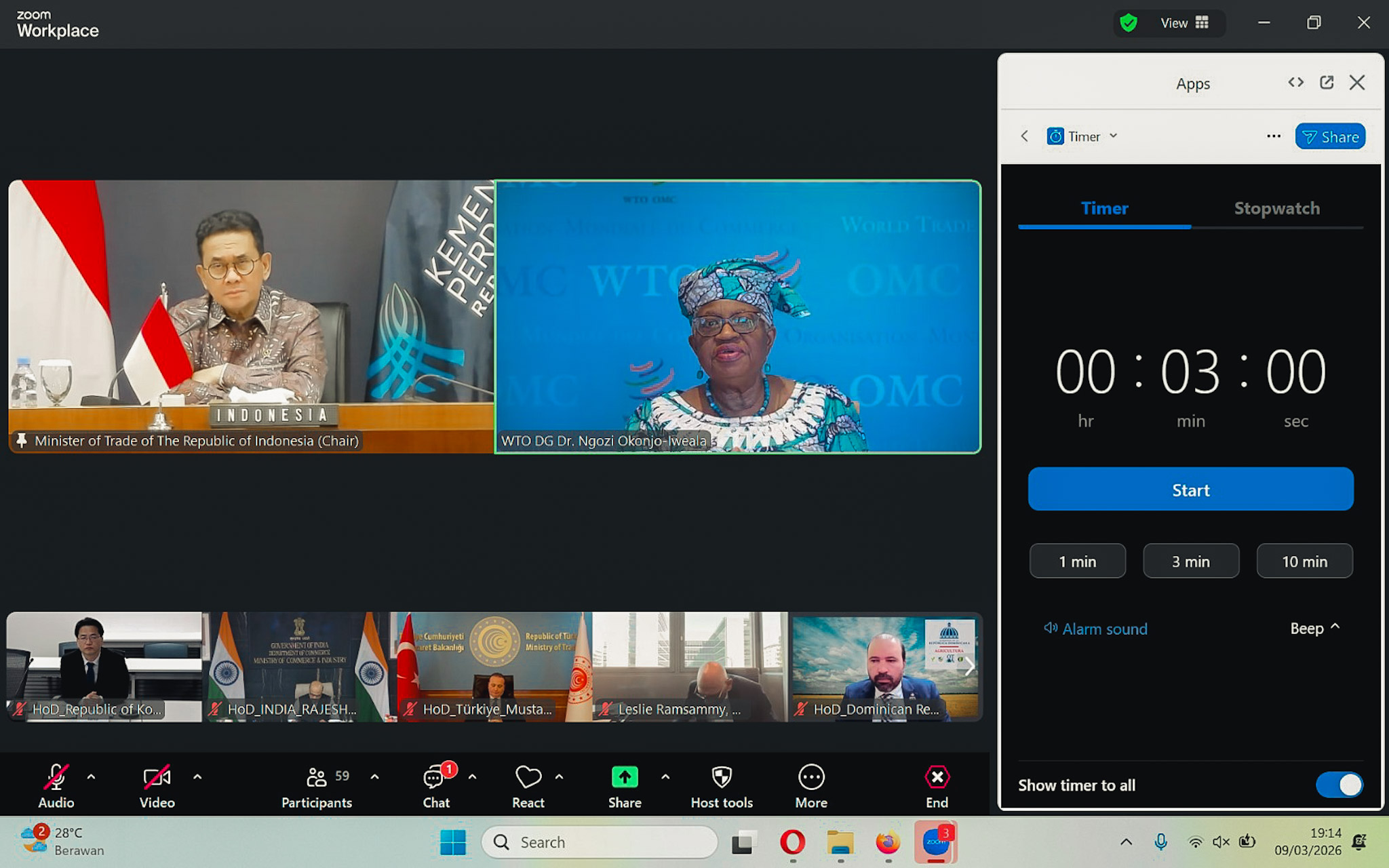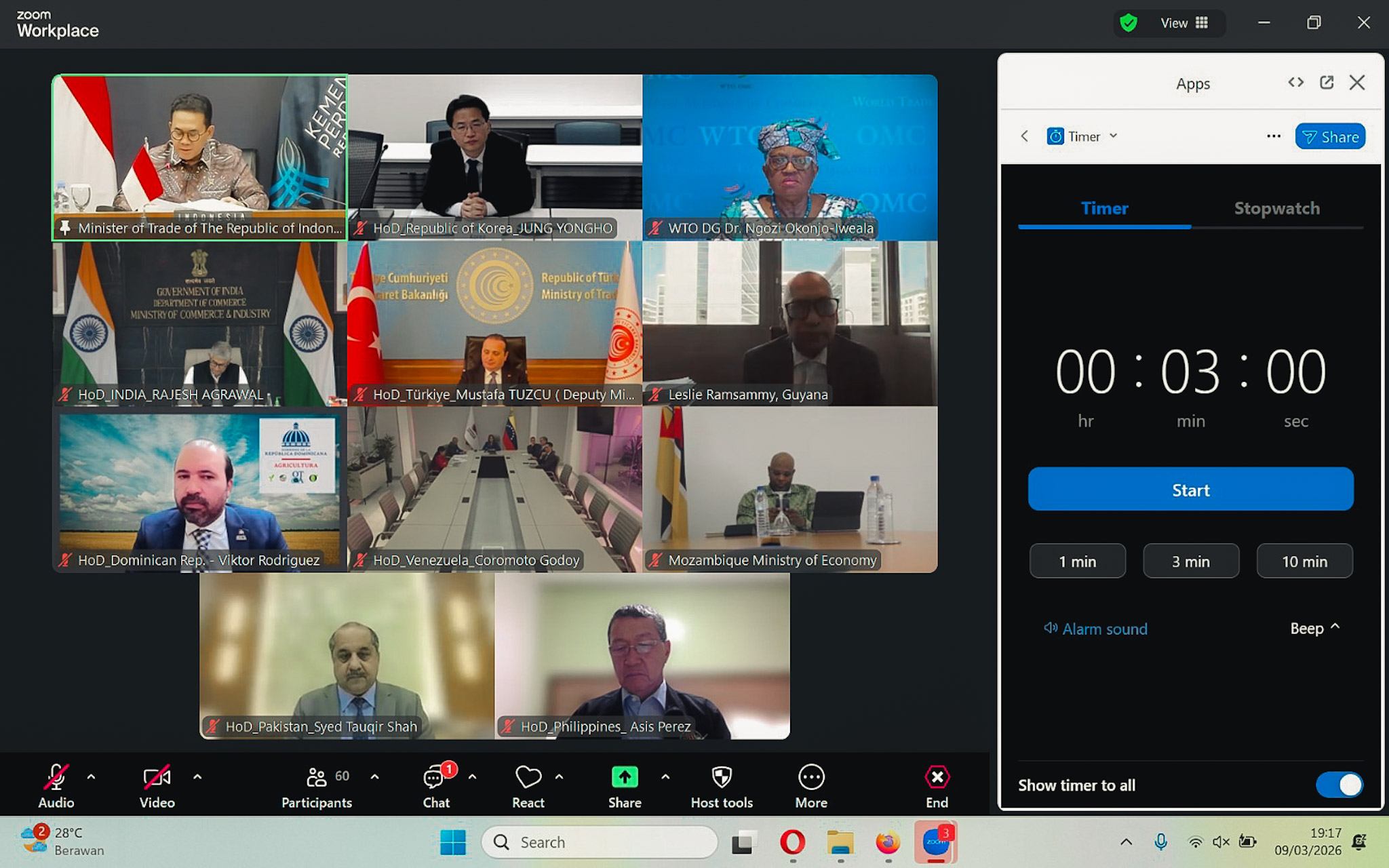 Menteri Perdagangan, Budi Santoso memimpin Pertemuan Menteri Tingkat Menteri Negara G33 yang berlangsung secara daring di Jakarta, Senin (9 Mar).