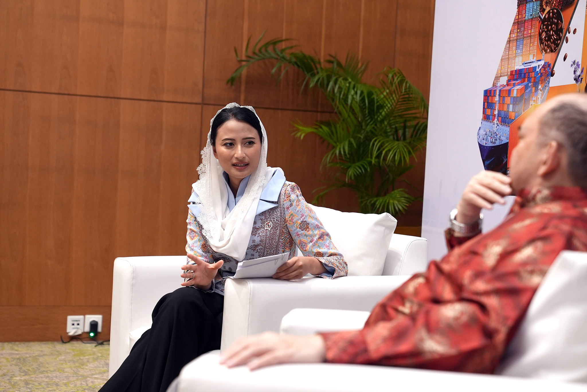 Wakil Menteri Perdagangan, Dyah Roro Esti menerima audiensi Konsulat Jenderal Republik Indonesia (KJRI) Guangzhao, Ben Perkasa Drajat dan Delegasi Bisnis Guangzhao, Tiongkok di sela rangkaian Trade Expo Indonesia (TEI) ke-40 yang berlangsung di ICE BSD, Tangerang, Banten, Kamis (16 Okt).