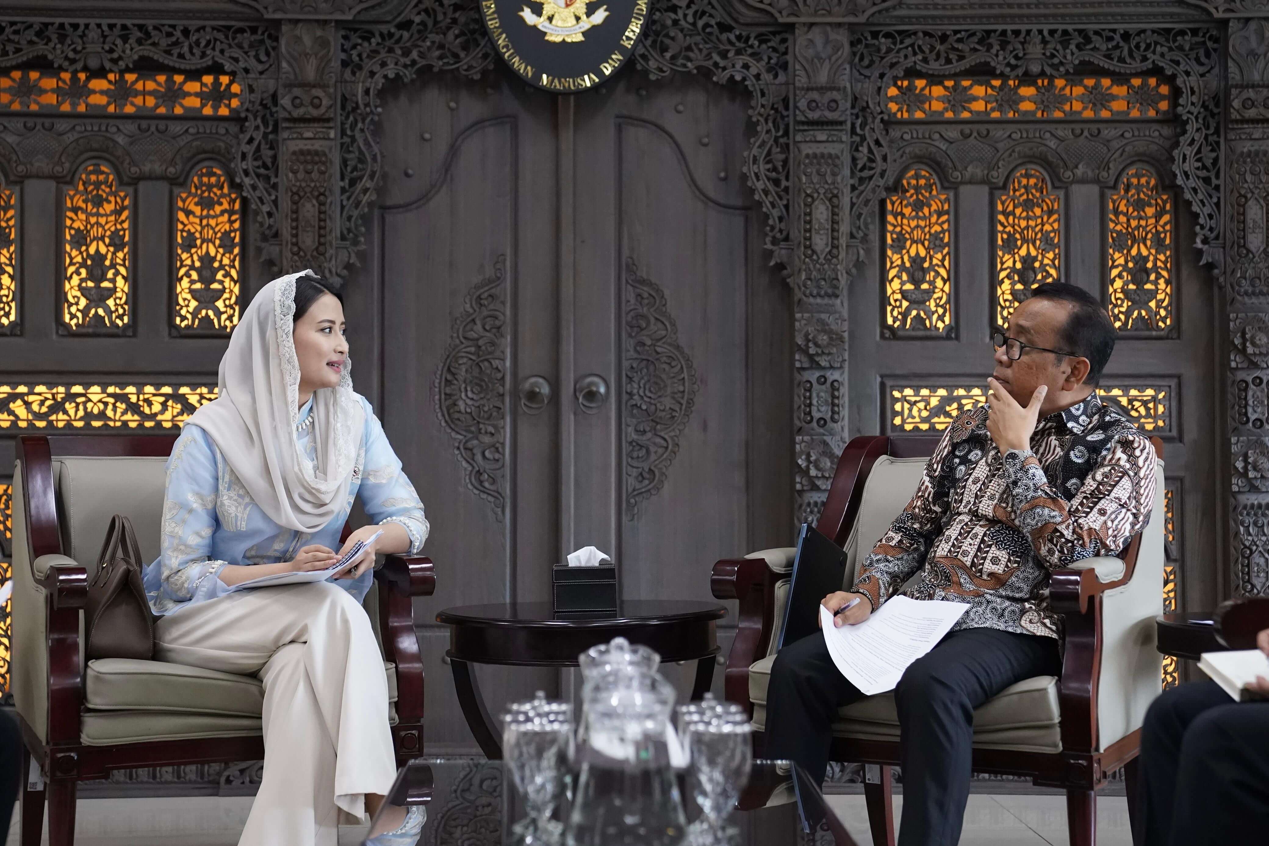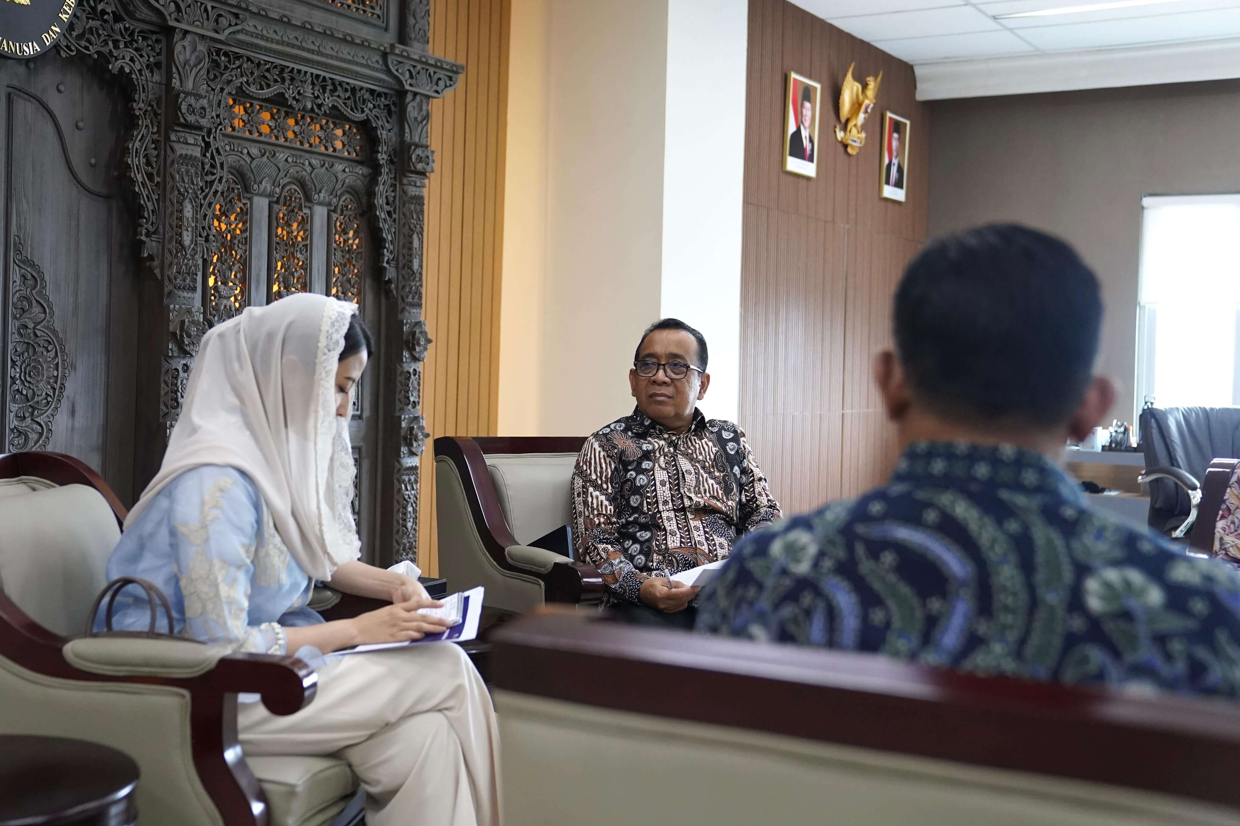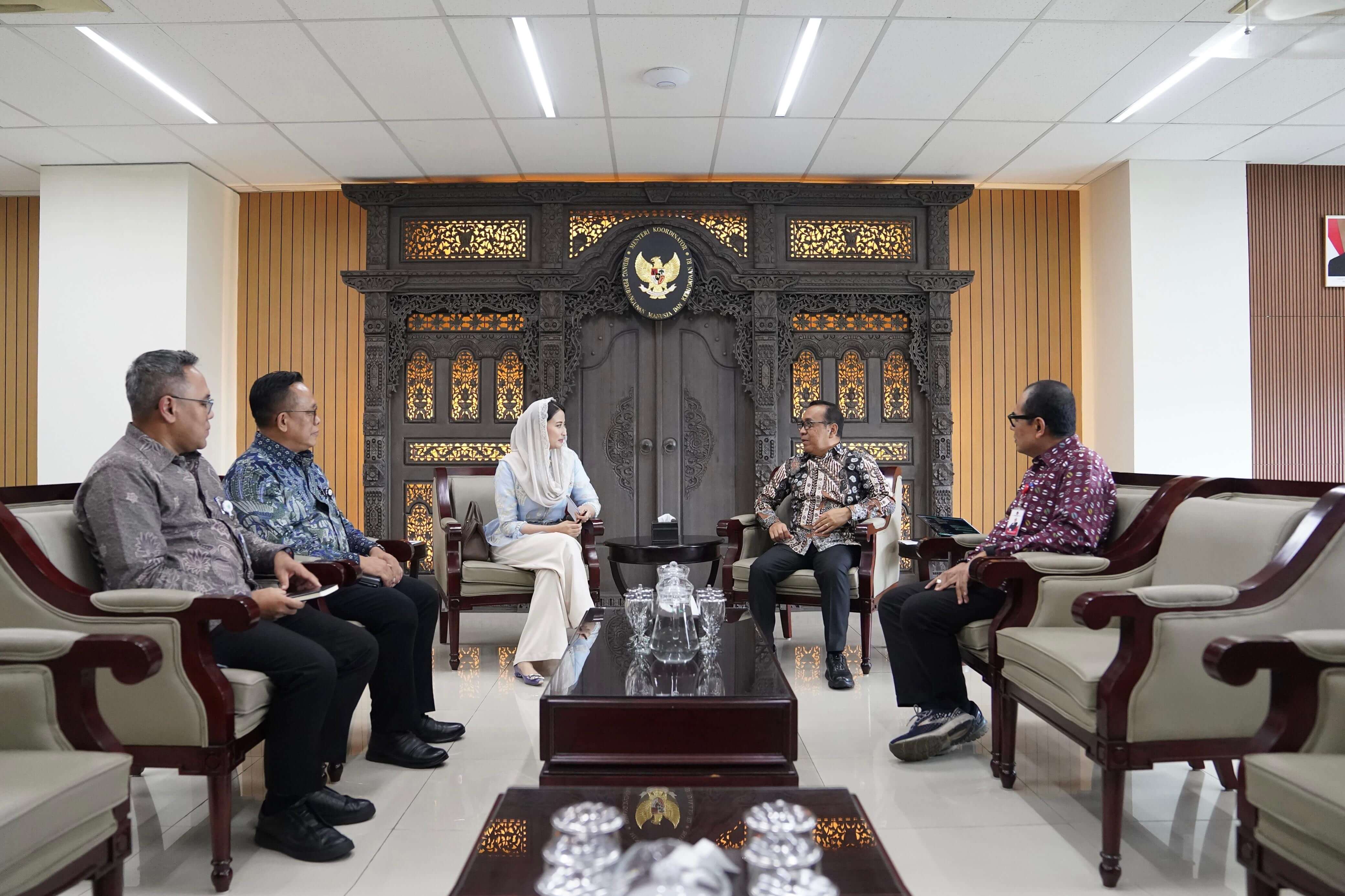 Wakil Menteri Perdagangan, Dyah Roro Esti melakukan pertemuan dengan Menteri Koordinator Bidang Pembangunan Manusia dan Kebudayaan, Pratikno di Kantor Kementerian Koordinator Bidang Pembangunan Manusia dan Kebudayaan, Jakarta, Kamis (23 Apr).
