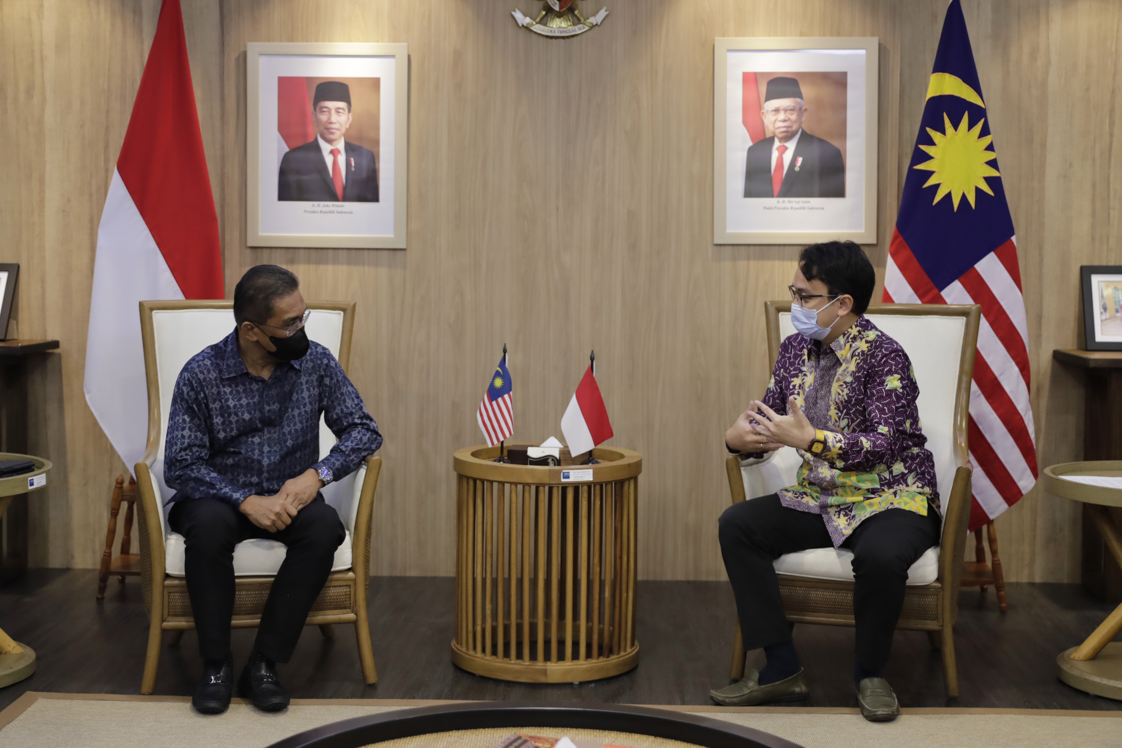 Wakil Menteri Perdagangan RI, Jerry Sambuaga bertemu dengan Menteri Tenaga dan Sumber Asli Malaysia, Datuk Seri Takiyyudin bin Hassan di Kantor Kementerian Perdagangan, Jakarta, Jumat (27 Mei). Pertemuan ini dilakukan dalam rangka peningkatan hubungan dagang antara Indonesia dengan Malaysia.