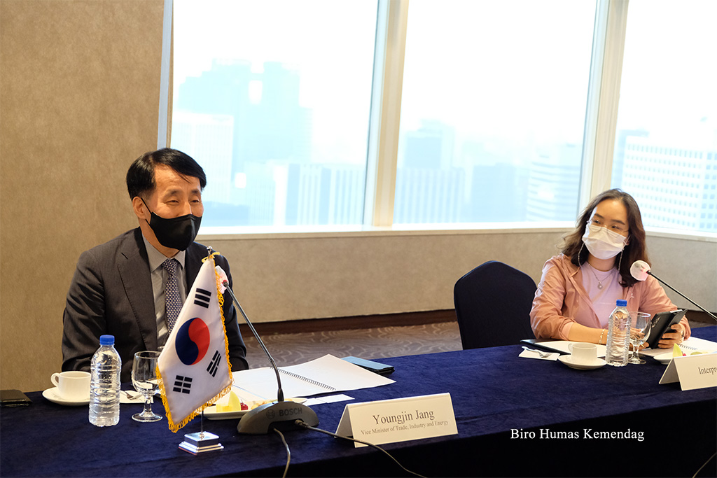 Wakil Menteri Perdagangan RI, Jerry Sambuaga melakukan pertemuan bilateral dengan Wakil Menteri Perdagangan, Industri, dan Energi (MOTIE) Korea Selatan, Youngjin Jang di Seoul, Korea Selatan, Jumat (10 Juni). Pertemuan tersebut membahas kerja sama perdagangan dan investasi Indonesia dan Korea Selatan.