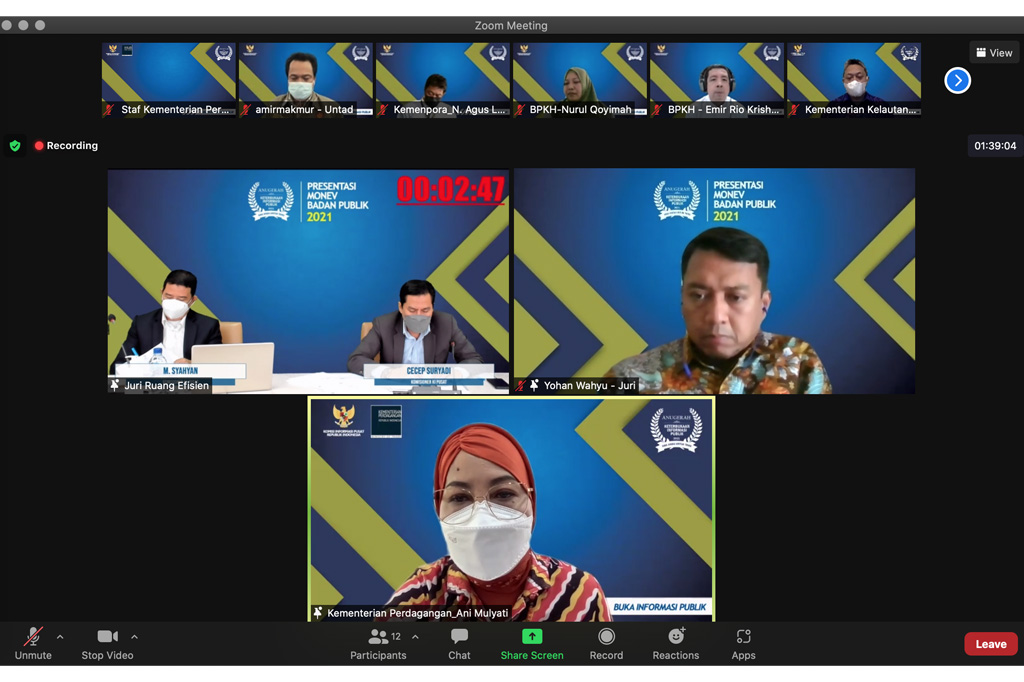 Kementerian Perdagangan mengikuti Presentasi Monitoring dan Evaluasi (Monev) Keterbukaan Informasi Publik yang diselenggarakan oleh Komisi Informasi Pusat secara daring pada Kamis (14 Okt). Kepala Biro Humas, Ani Mulyati selaku Pejabat Pengelola Informasi dan Dokumentasi (PPID) Kementerian Perdagangan hadir secara daring untuk mempresentasikan pelaksanaan keterbukaan informasi publik di Kementerian Perdagangan.