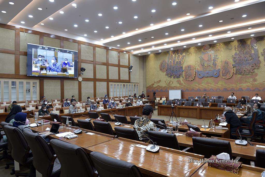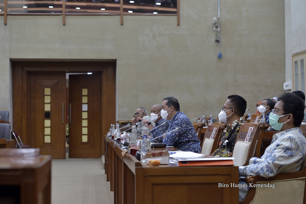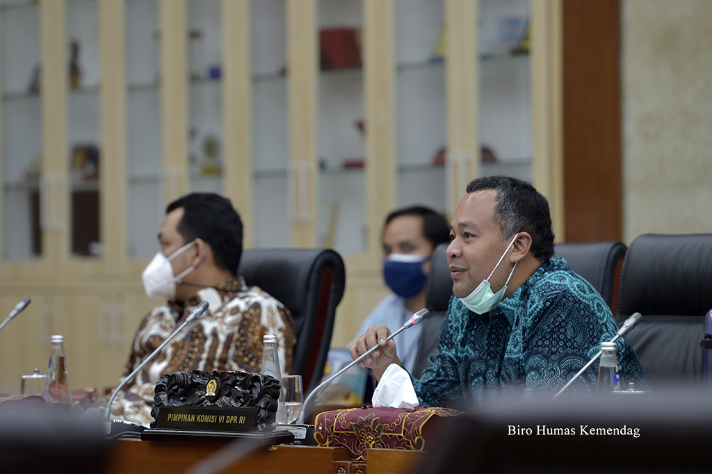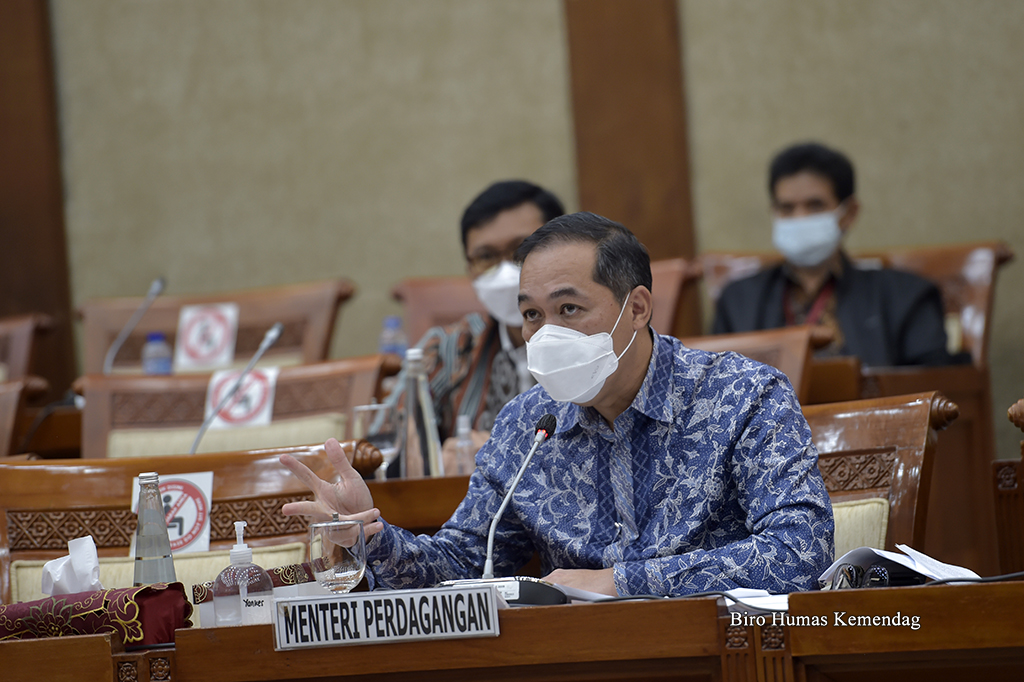 Menteri Perdagangan, Muhammad Lutfi bersama Jajaran Eselon I dan II Kementerian Perdagangan mengikuti Rapat Kerja dengan Komisi VI DPR RI membahas tentang Laporan Keuangan Kementerian Perdagangan Tahun Anggaran 2020, Progres Realisasi Anggaran Tahun Anggaran 2021, dan Pembahasan Rencana Kerja Anggaran (RKA) Kementerian Perdagangan Tahun Anggaran 2022 yang berlangsung di Gedung DPR RI, Jakarta, Kamis (26 Agustus).