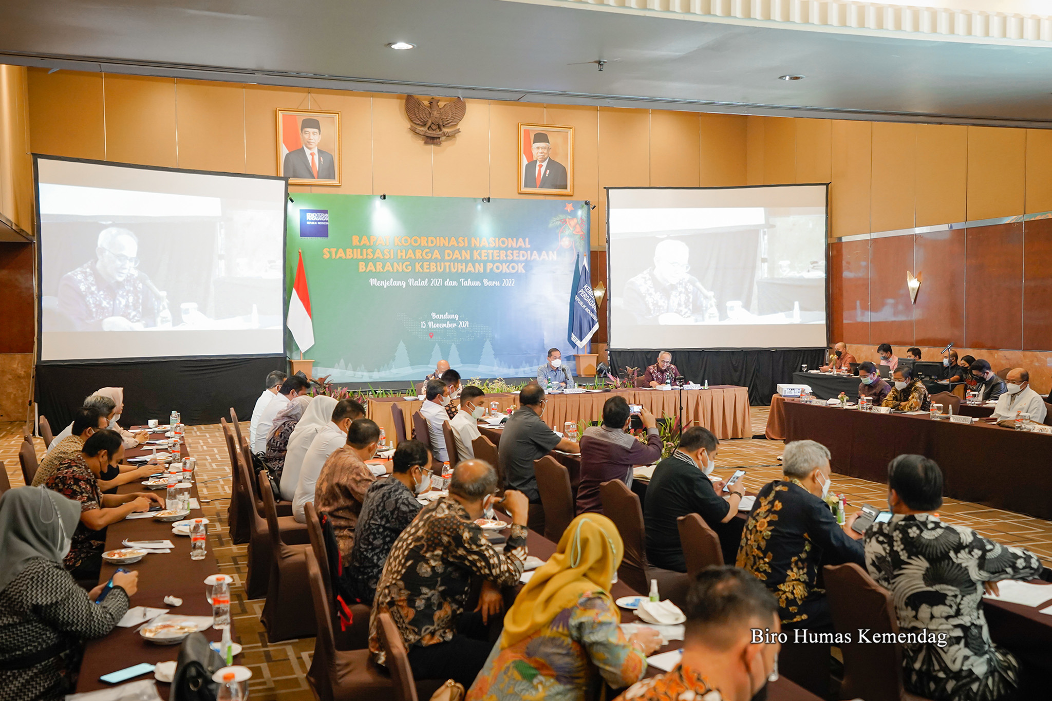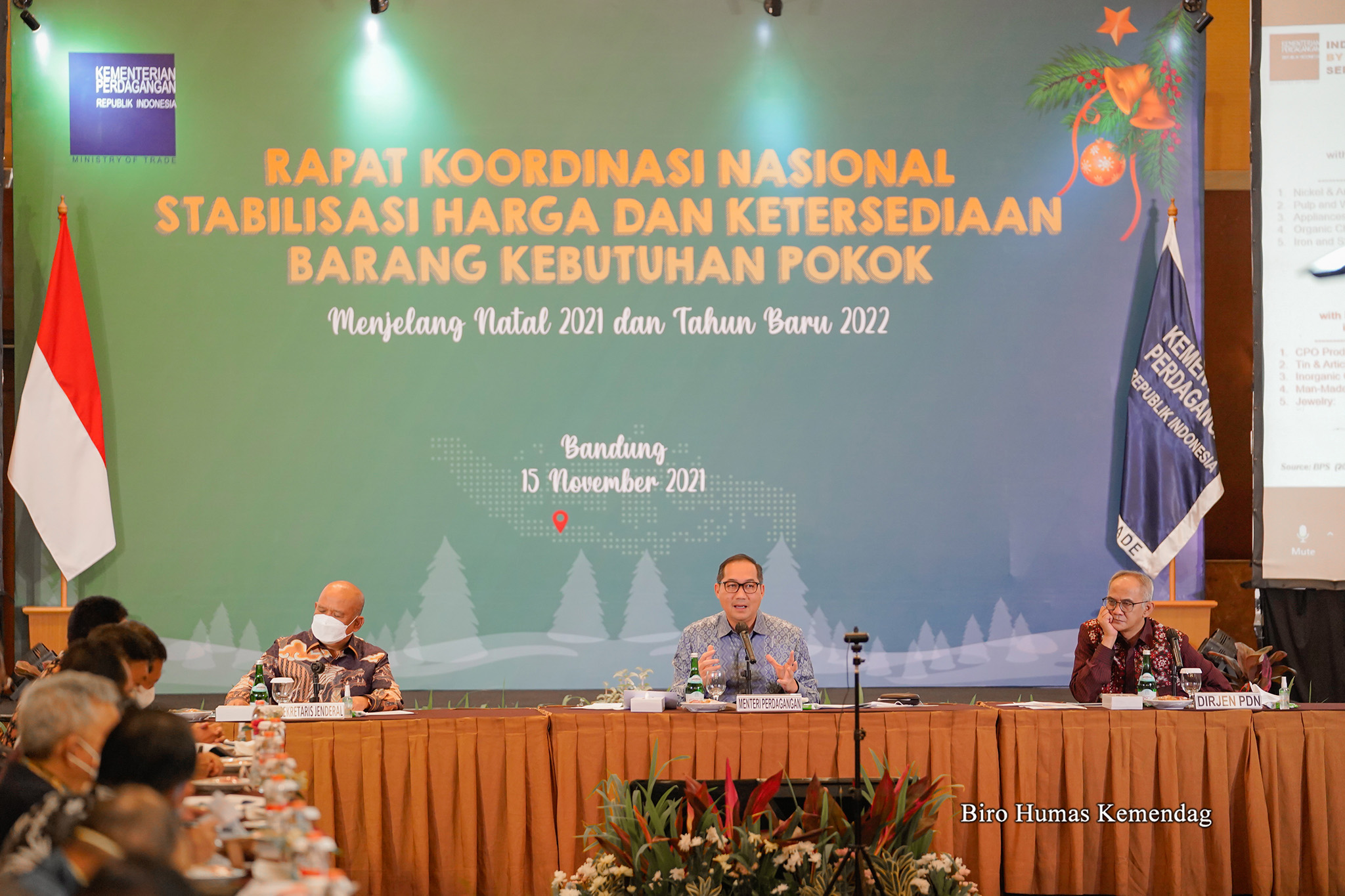 Menteri Perdagangan, Muhammad Lutfi memimpin Rapat Koordinasi Nasional (Rakornas) Stabilisasi Harga dan Ketersediaan Bapok Menjelang Natal 2021 dan Tahun Baru 2022 yang dilaksanakan secara hibrida di Bandung, Senin (15 Nov).