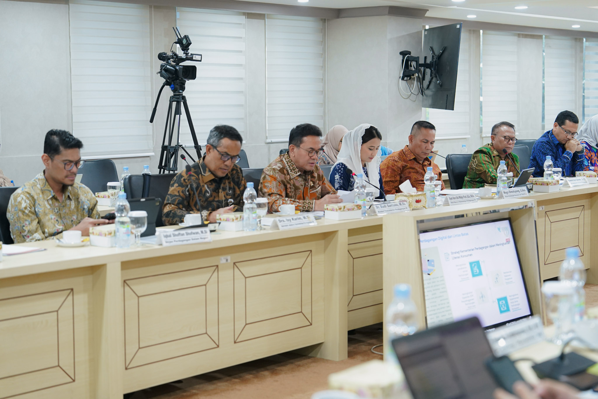 Rapat ini turut dihadiri oleh Sekretaris Jenderal Kemendag, Isy Karim; Direktur Jenderal Perdagangan Dalam Negeri, Iqbal Shoffan Shofwan; dan Direktur Jenderal Perlindungan Konsumen dan Tertib Niaga, Moga Simatupang.