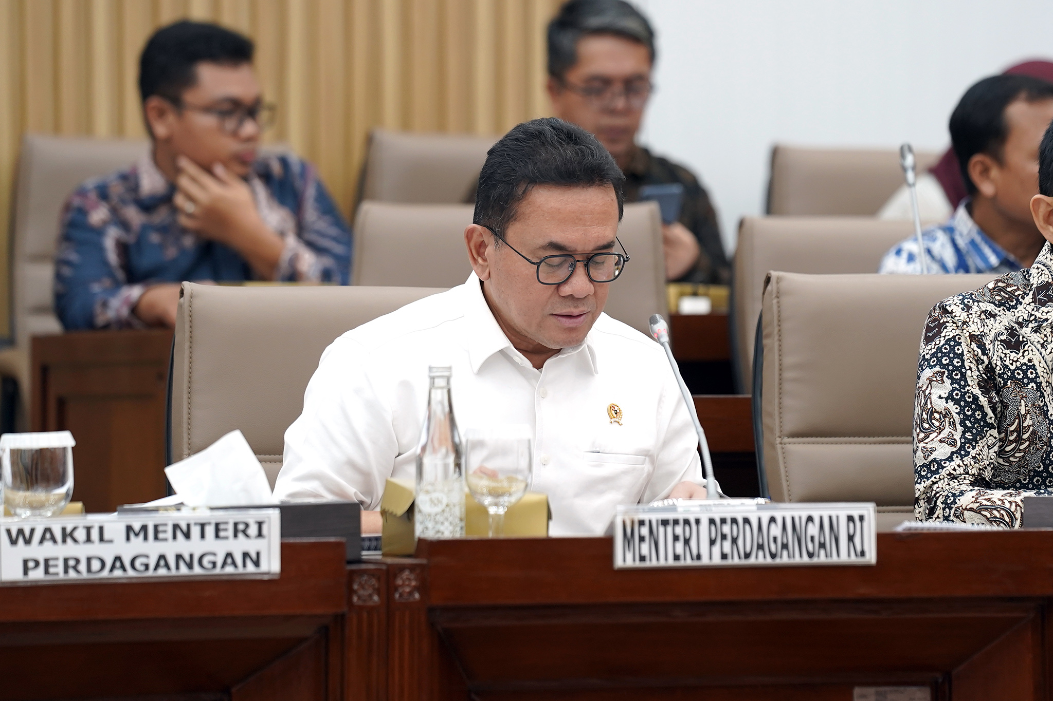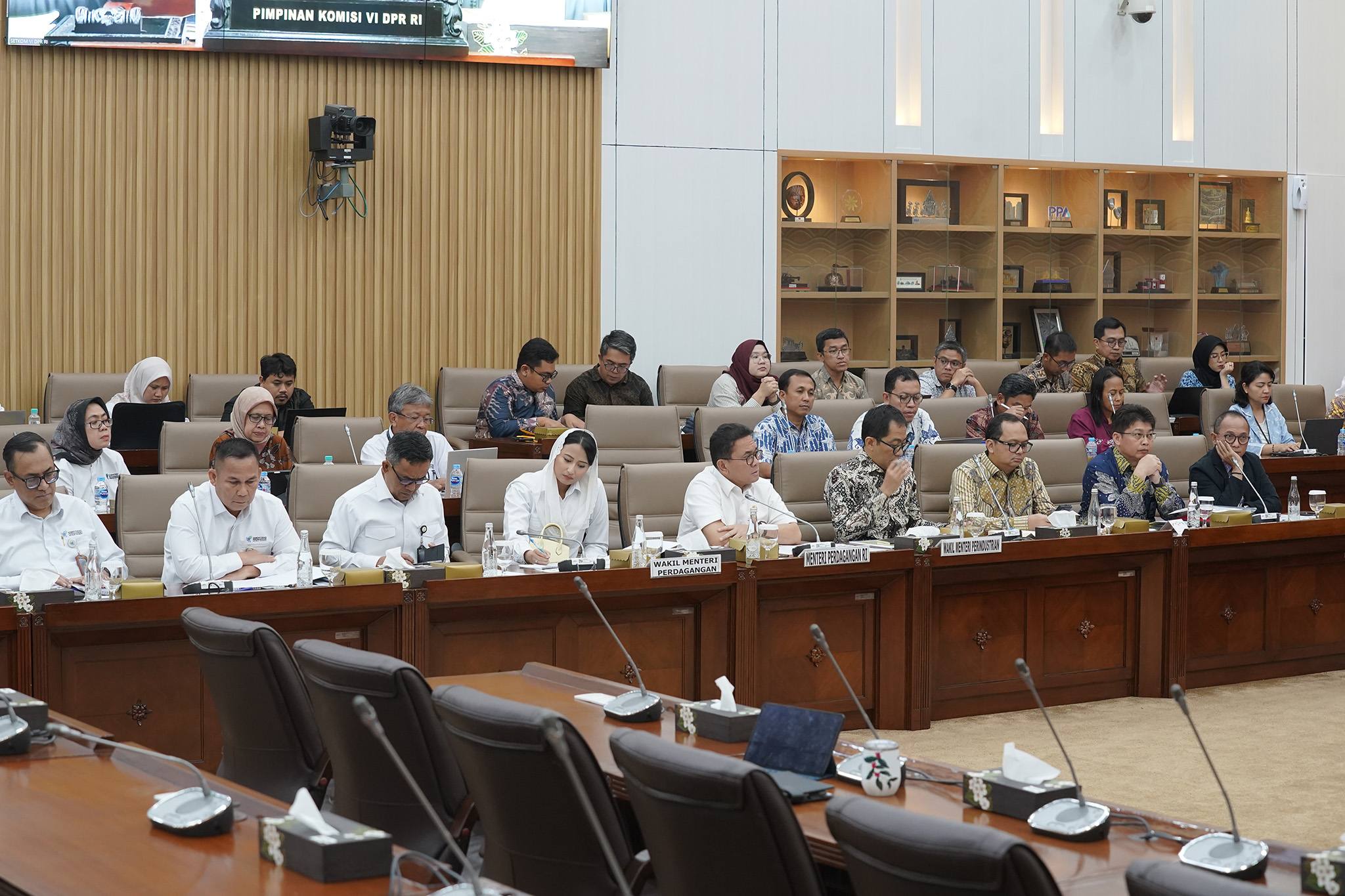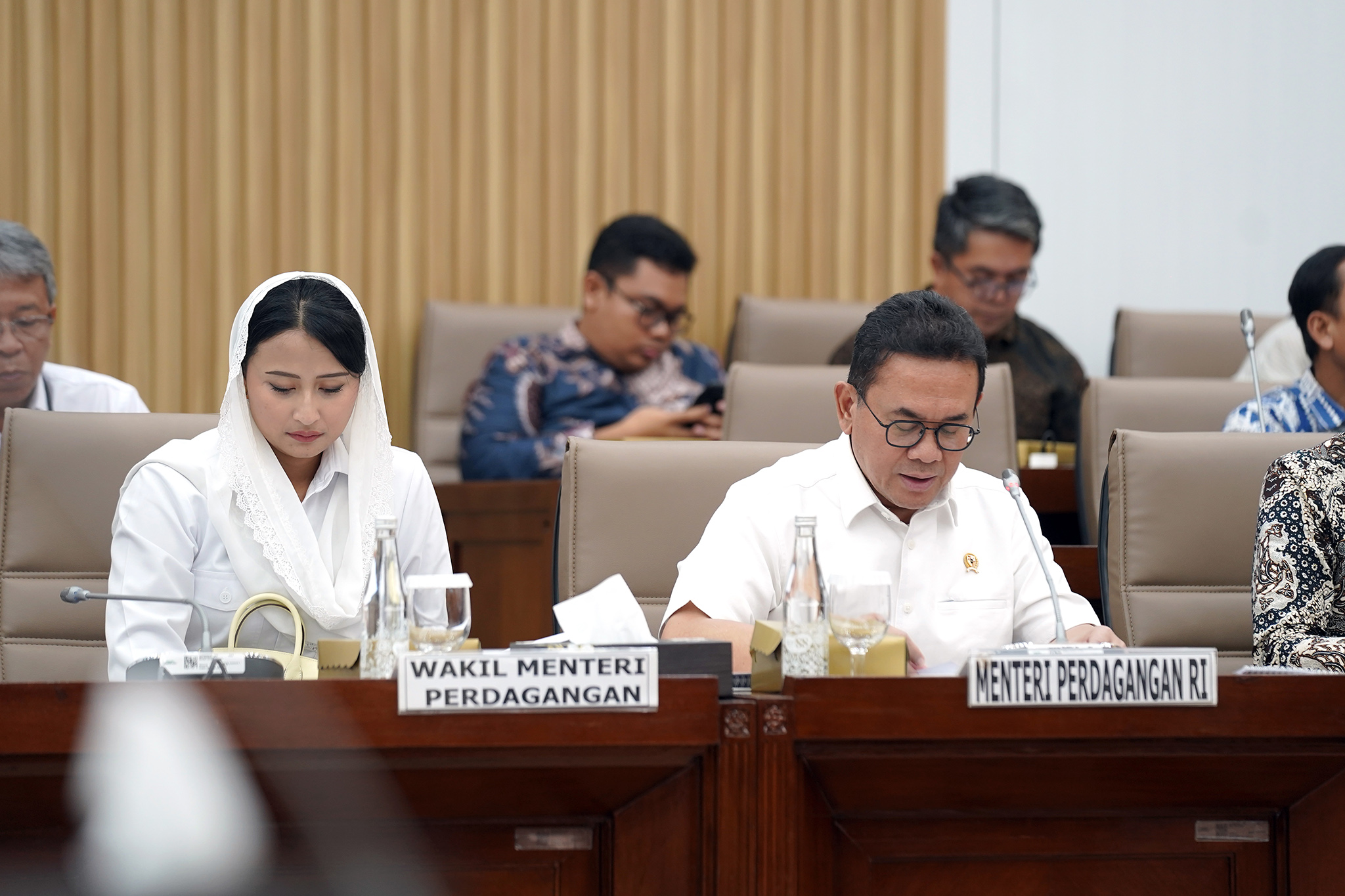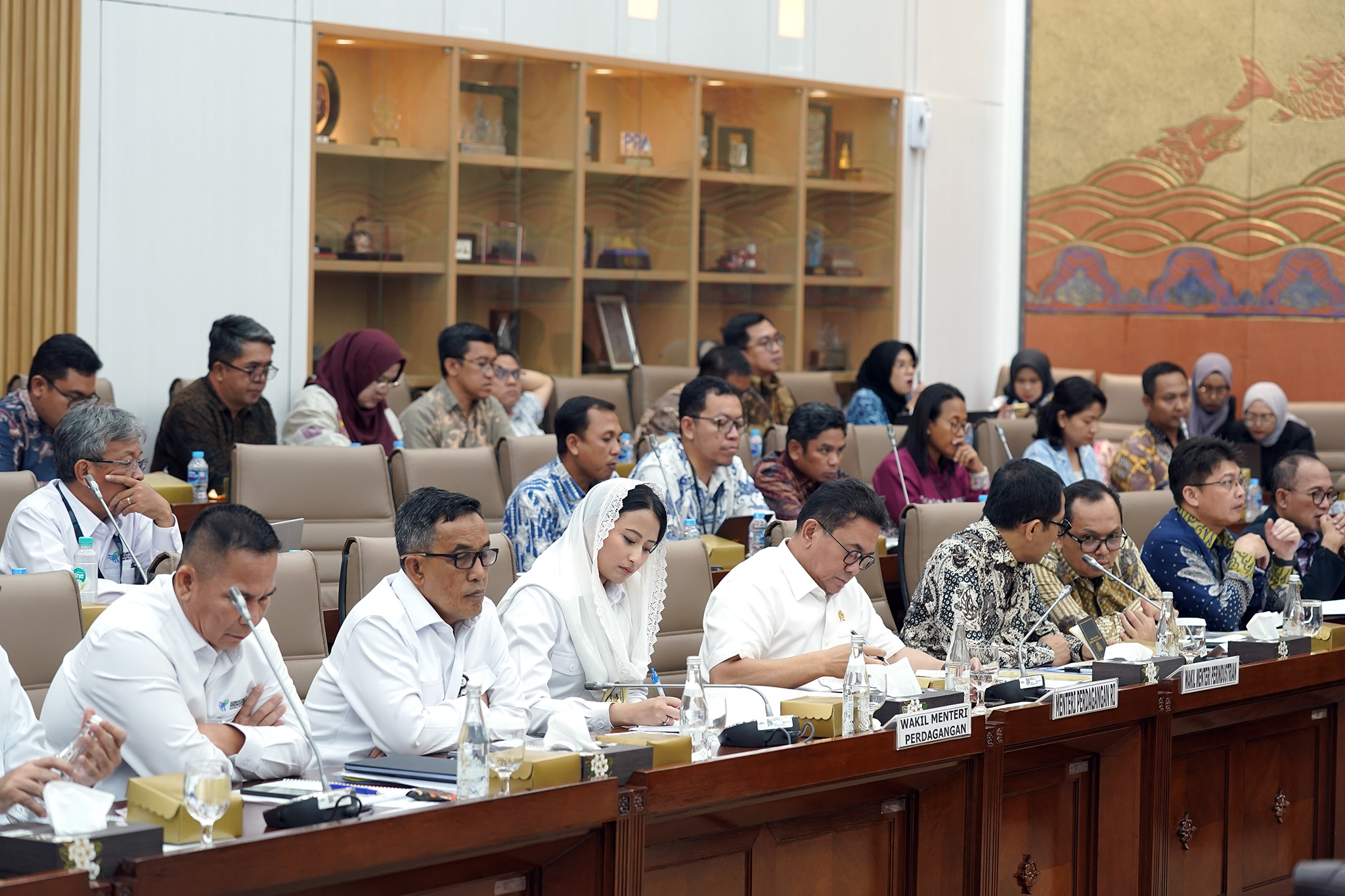 Menteri Perdagangan, Budi Santoso bersama Wakil Menteri Perdagangan, Dyah Roro Esti menghadiri rapat kerja dengan komisi VI DPR RI membahas Saling Pengakuan Sektoral ASEAN untuk Bahan Bangunan dan Konstruksi (ASEAN Sectoral Mutual Recognition Arrangement for Building and Construction Materials/MRA BCM) di Gedung DPR RI, Jakarta, Senin (29 Sep).