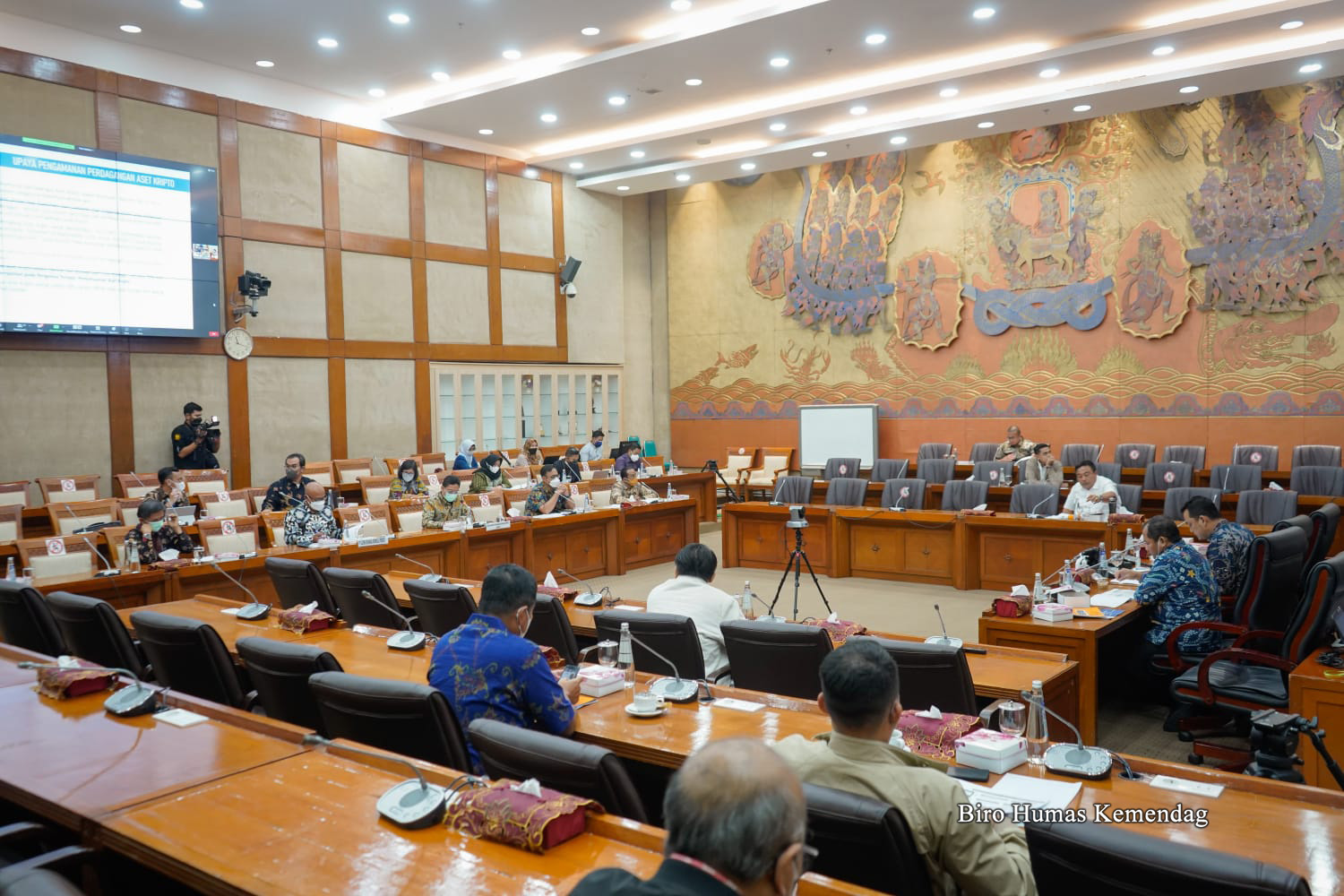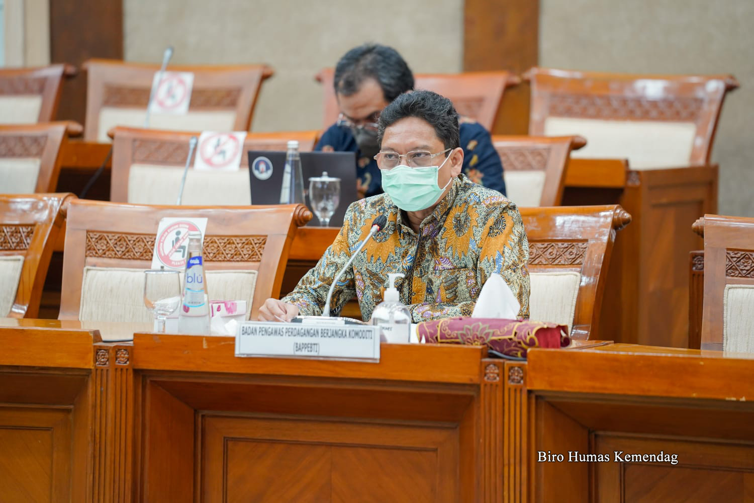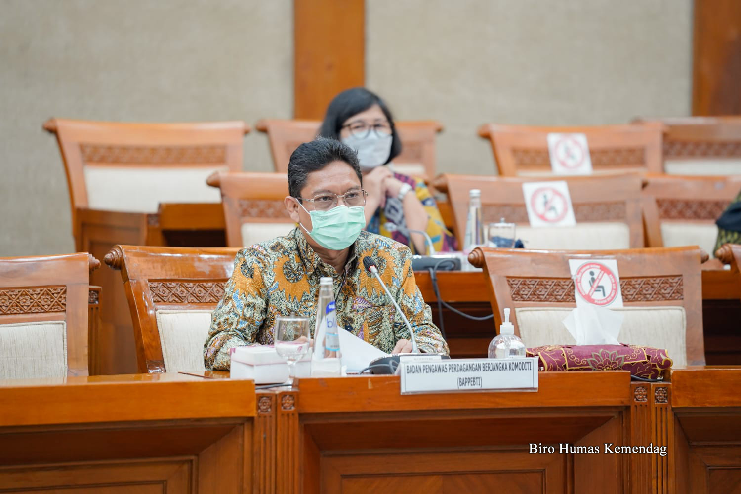 Plt Kepala Badan Pengawas Perdagangan Berjangka Komoditi (Bappebti), Indrasari Wisnu Wardhana menghadiri Rapat Kerja dengan Komisi VI DPR RI terkait regulasi dan tata kelola aset kripto yang dilaksanakan di Gedung DPR RI, Jakarta, Kamis (24 Mar).