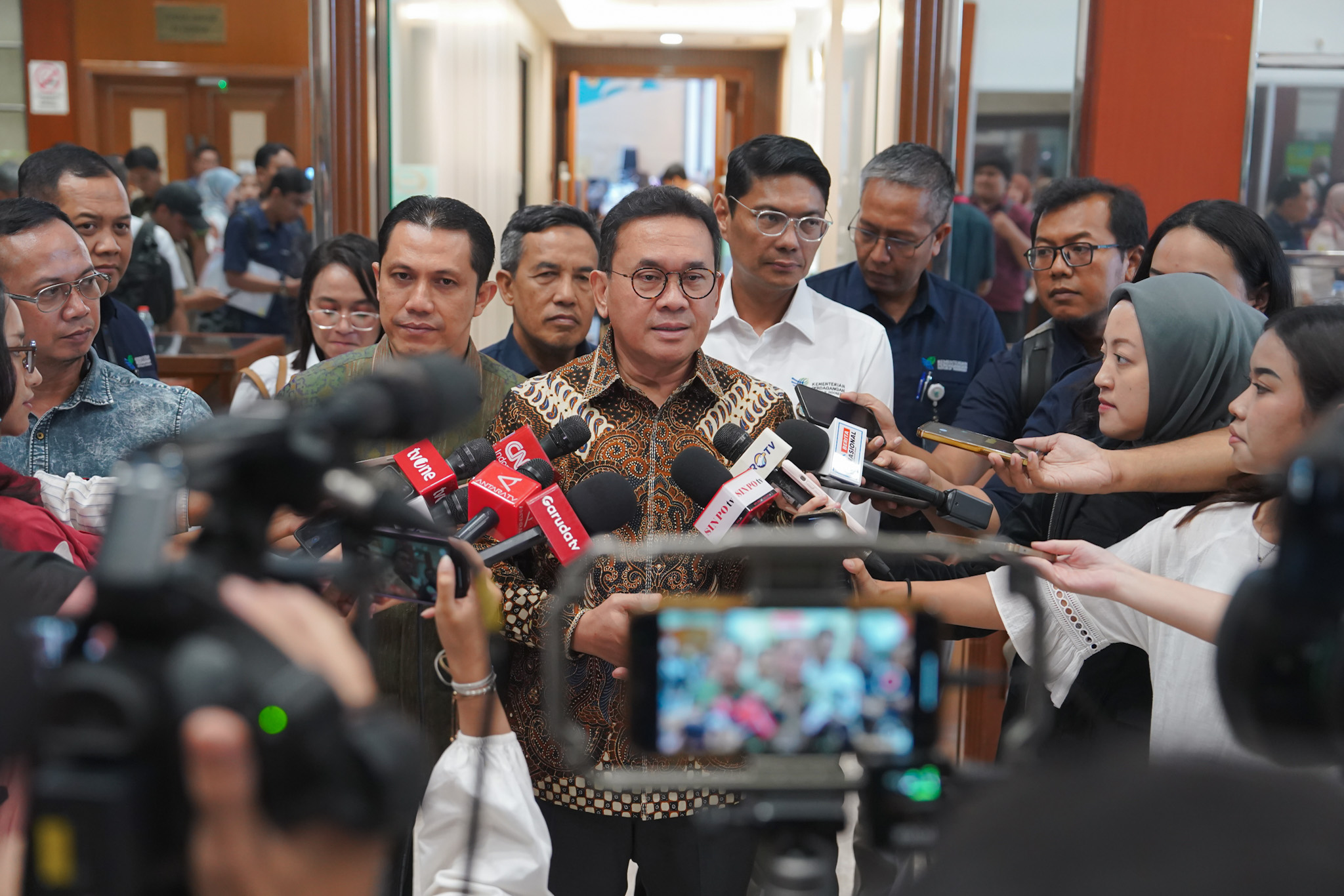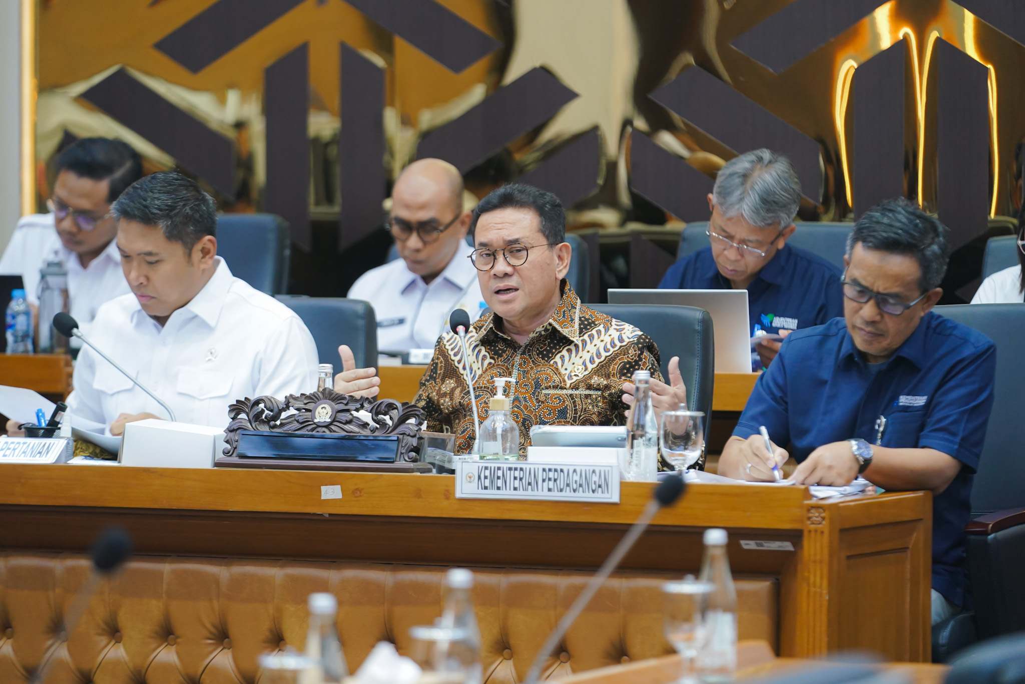 Menteri Perdagangan, Budi Santoso bersama Wakil Menteri Pertanian, Sudaryono menghadiri Rapat Kerja (Raker) dengan Badan Legislasi (Baleg) DPR RI di Gedung DPR RI, Jakarta, Rabu (26 Nov).