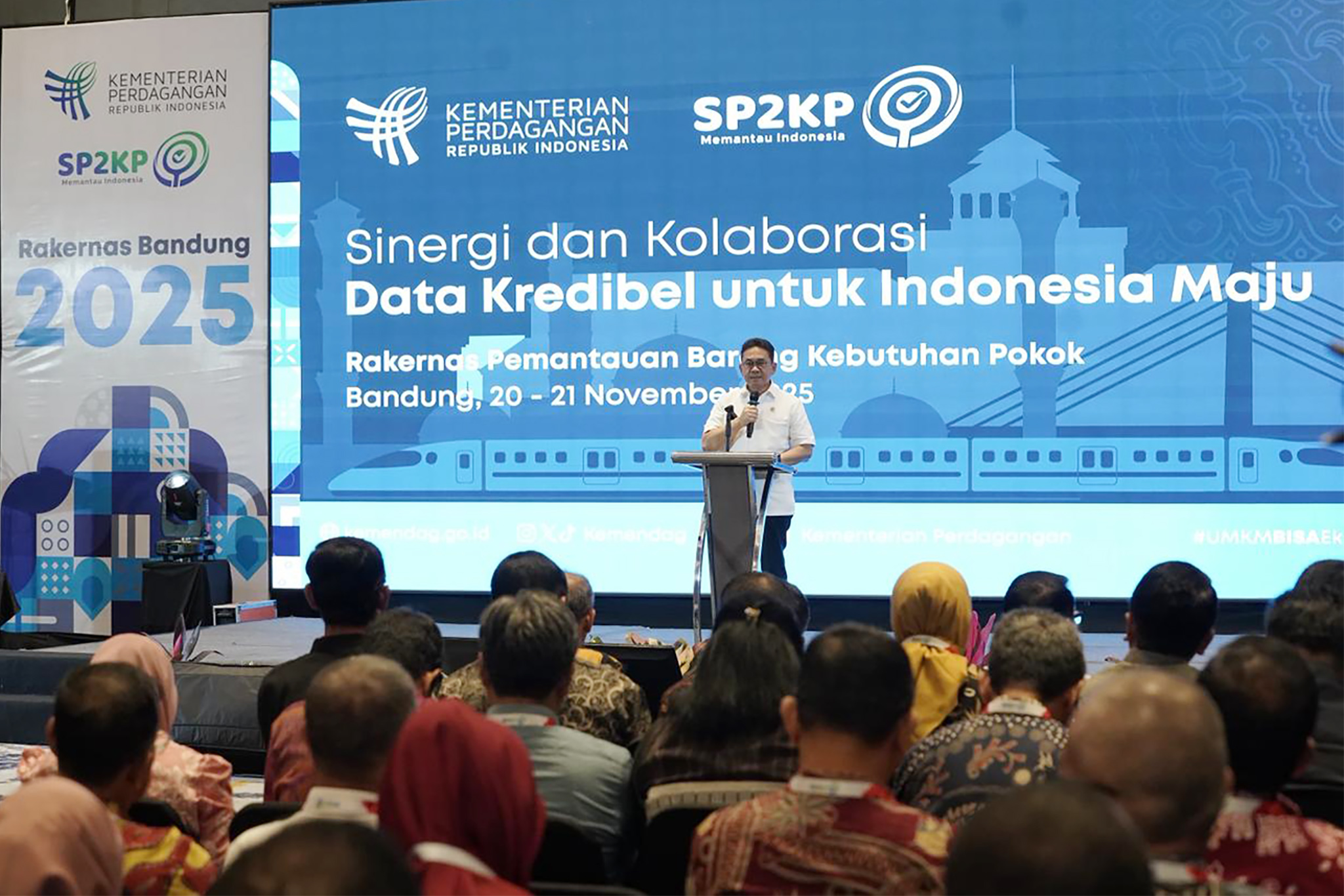 Menteri Perdagangan, Budi Santoso membuka Rapat Kerja Nasional (Rakernas) Pemantauan Barang Kebutuhan Pokok yang berlangsung di Bandung, Jawa Barat, Kamis (20 Nov). Rakernas yang mengusung tema “Kolaborasi dan Sinergi: Data Kredibel untuk Indonesia Maju” ini dilaksanakan pada 20--21 November 2025.