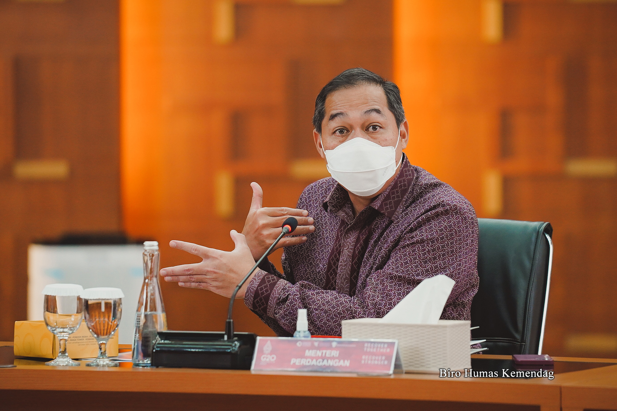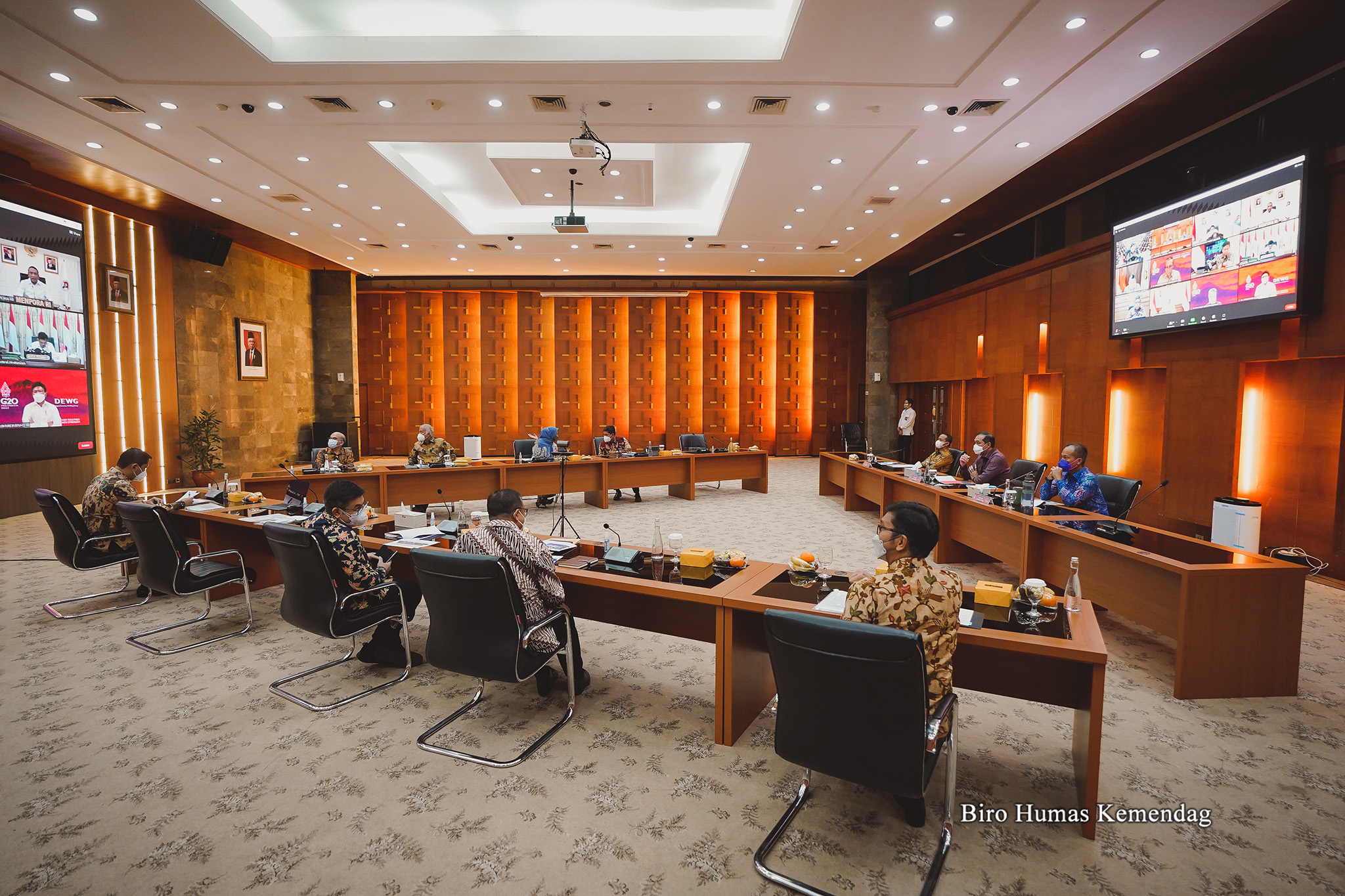 Menteri Perdagangan, Muhammad Lutfi bersama Menteri Investasi/Kepala BKPM, Bahlil Lahadalia dan Menteri Perindustrian, Agus Gumiwang Kartasasmita menggelar rapat lanjutan terkait Trade, Investment, and Industry Working Group (TIIWG) G20 di Jakarta, Selasa (15 Feb).