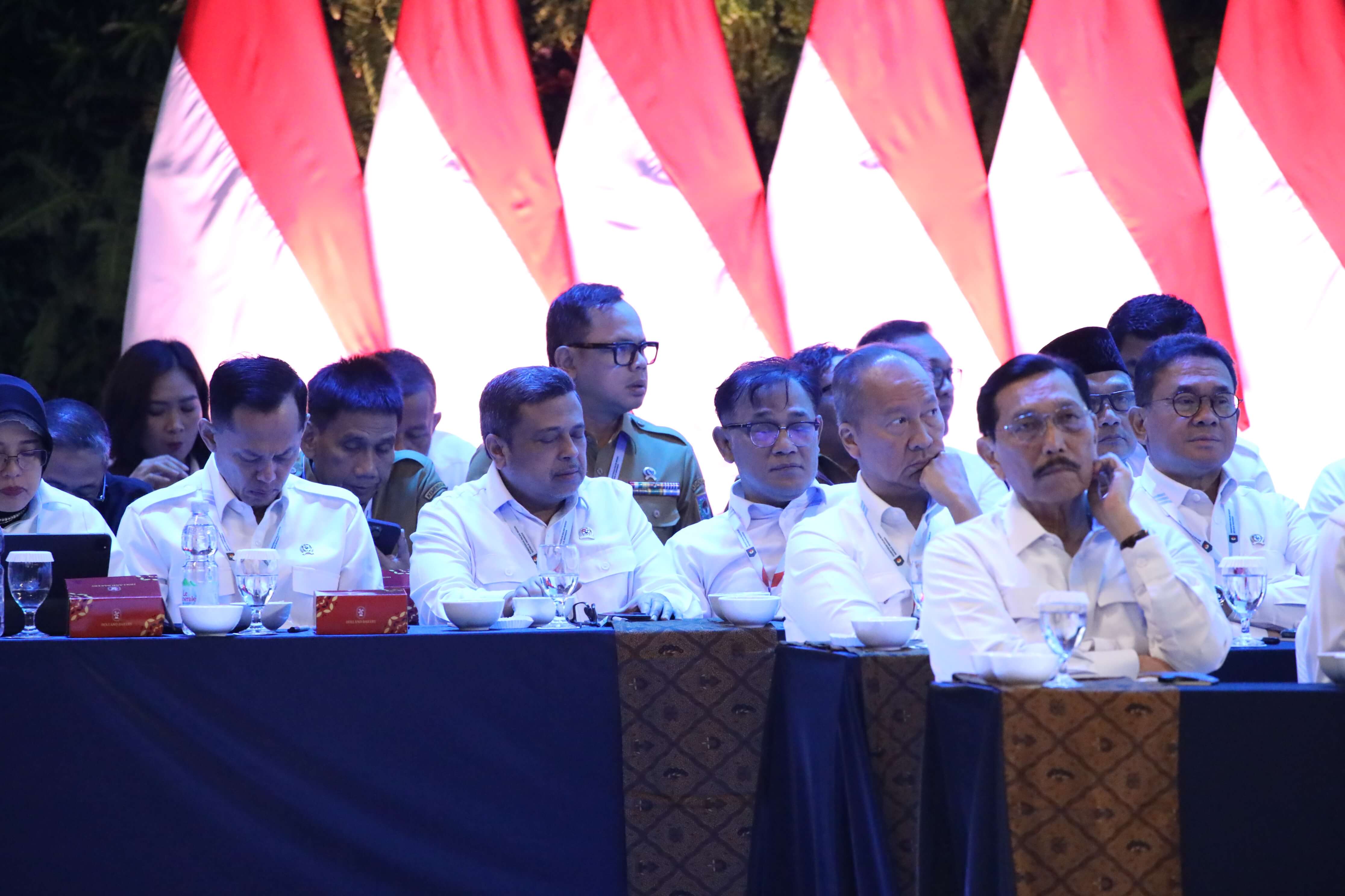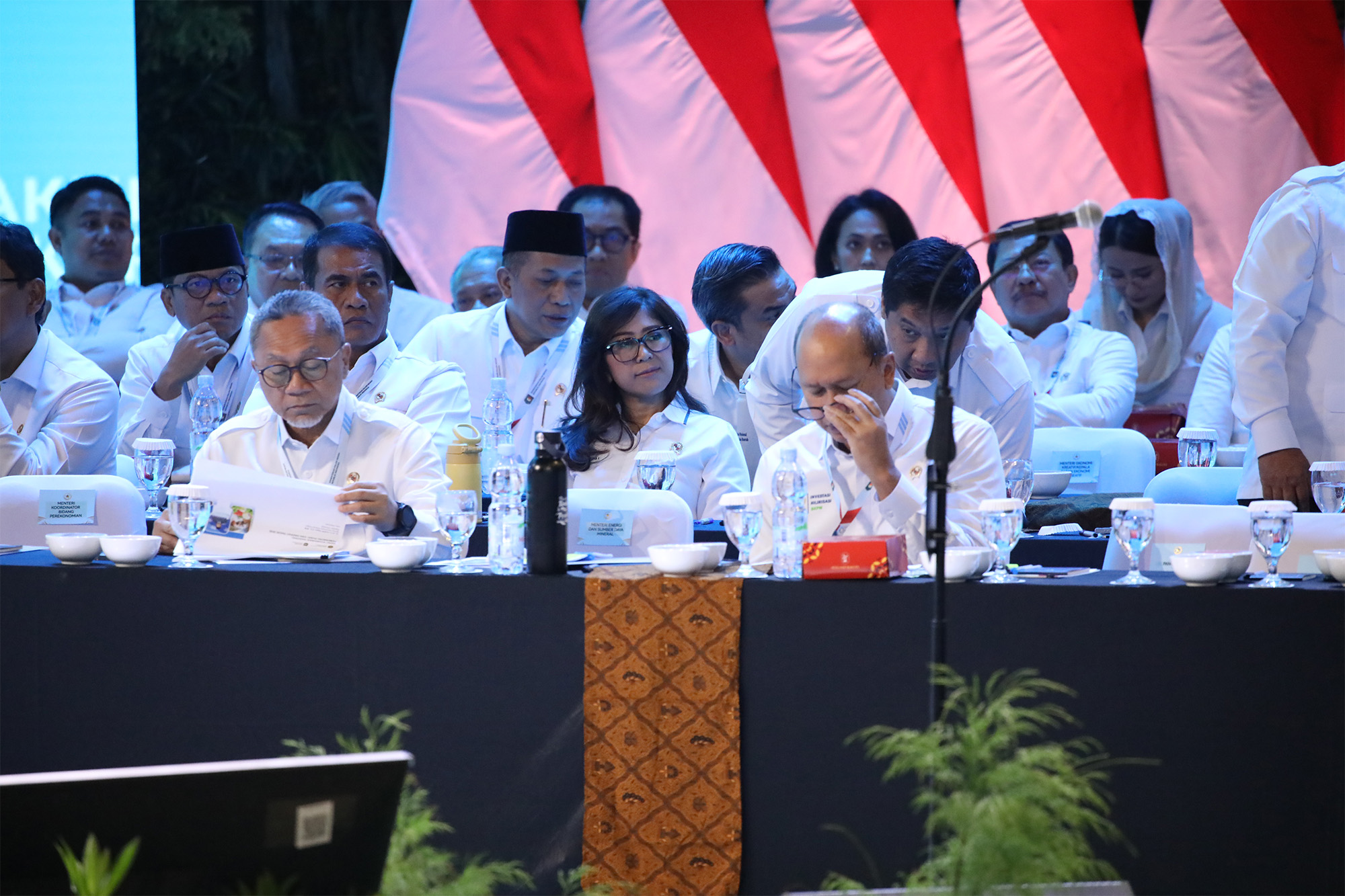 Menteri Perdagangan, Budi Santoso bersama Wakil Menteri Perdagangan, Dyah Roro Esti menghadiri Rapat Koordinasi Nasional Pemerintah Pusat dan Pemerintah Daerah Tahun 2026 di Sentul International Convention Center, Kabupaten Bogor, Jawa Barat, Senin (2 Jan).