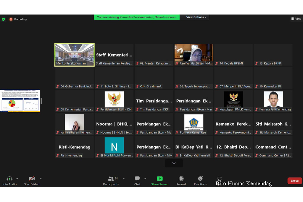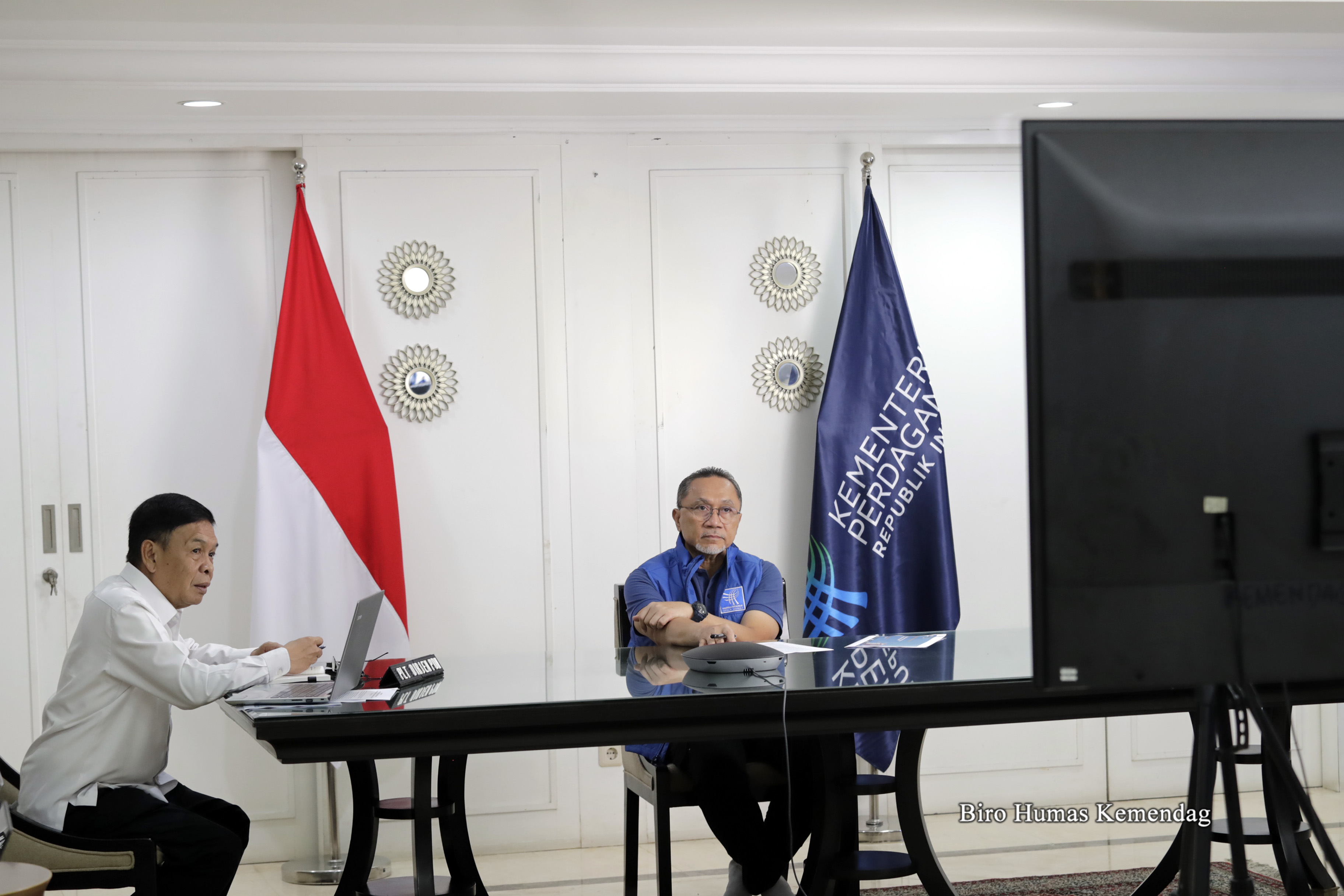 Menteri Perdagangan, Zulkifli Hasan menghadiri rapat pembahasan komite kebijakan pembiayaan bagi UMKM yang berlangsung secara virtual, Senin (28 Nov). Rapat ini dipimpin oleh Menteri Koordinator Bidang Perekonomian, Airlangga Hartarto.