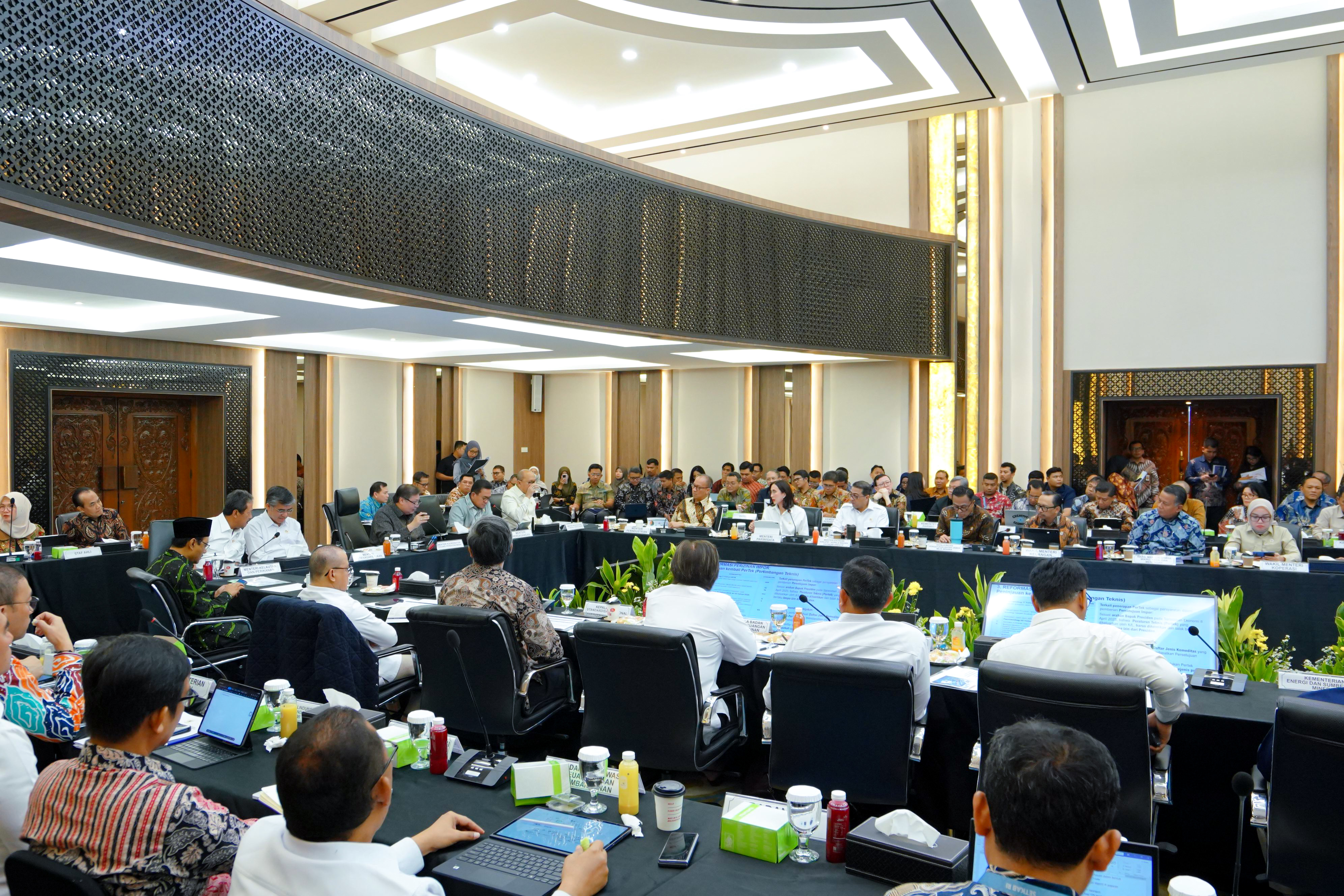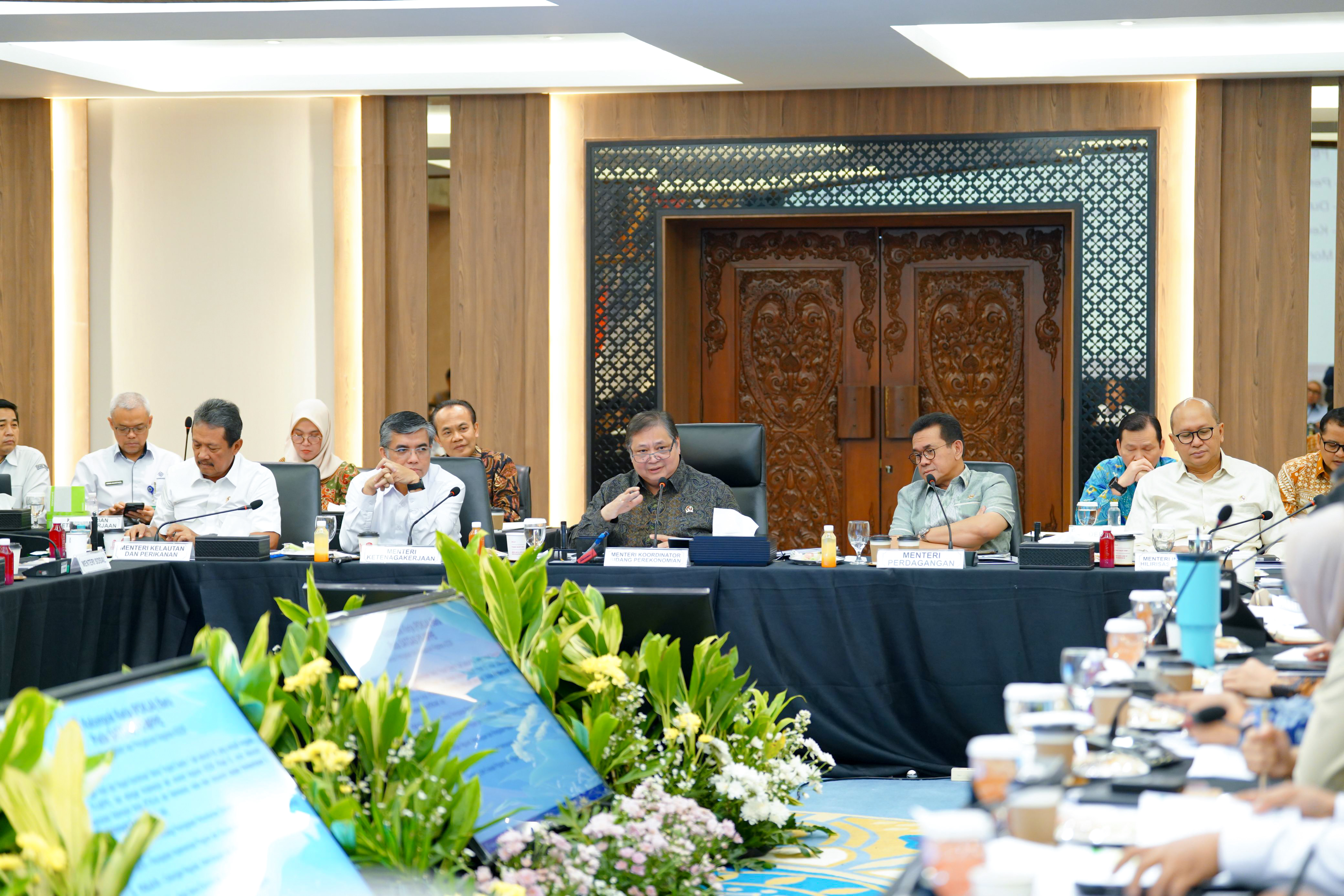 Rapat tersebut dipimpin langsung oleh Menteri Koordinator Bidang Perekonomian, Airlangga Hartarto. Dalam pertemuan ini, dibahas berbagai isu strategis yang berdampak langsung terhadap pertumbuhan ekonomi nasional.
