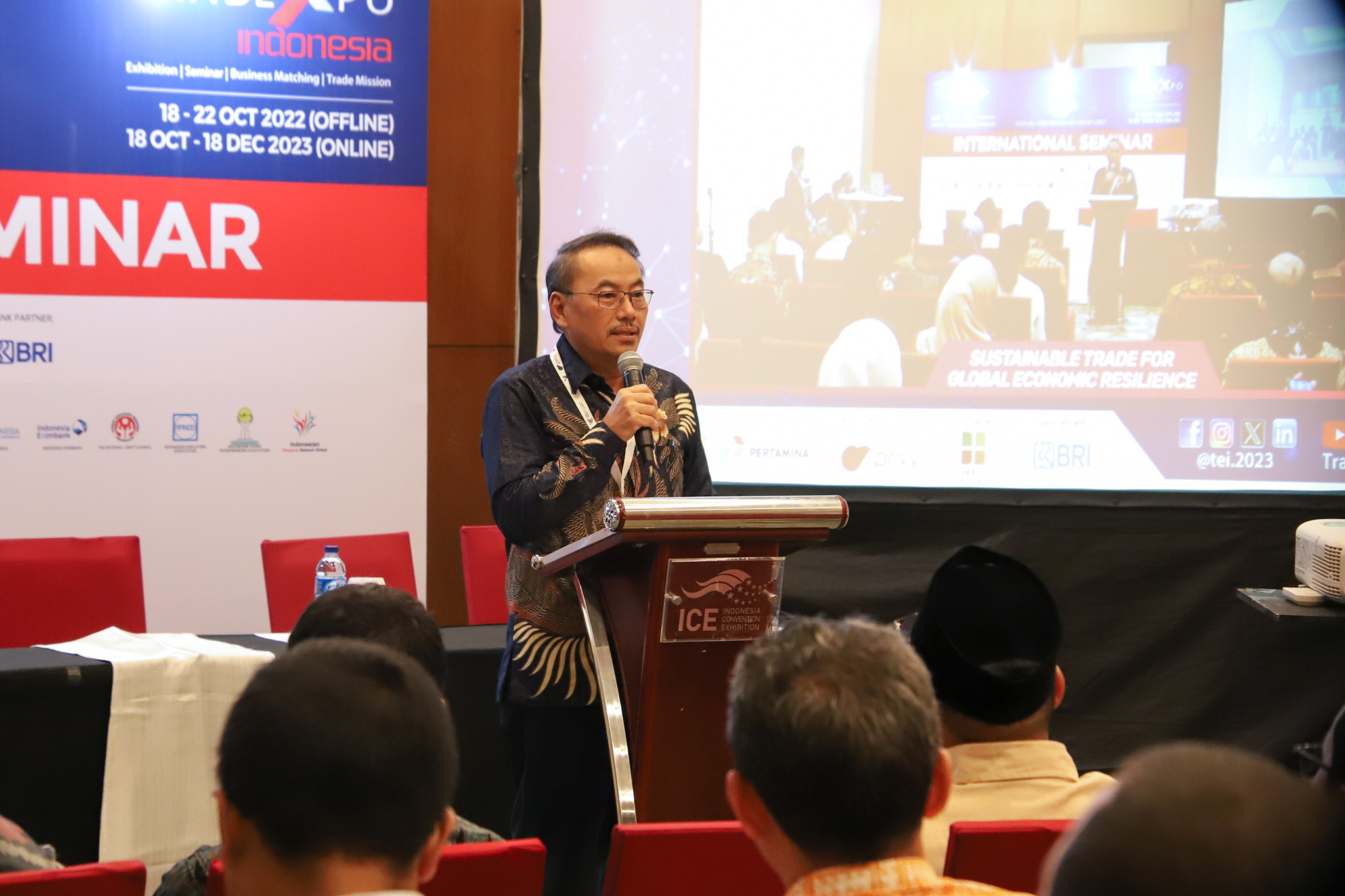 Direktur Jenderal Pengembangan Ekspor Nasional, Didi Sumedi menjadi pembicara kunci pada Seminar Halal Nararative to Boost Sustainable Export of Indonesia Halal Products di Indonesia Convention Exhibition (ICE) BSD City, Tangerang, Sabtu (21 Okt). Seminar ini merupakan salah satu dari rangkaian acara pada perhelatan Trade Expo Indonesia (TEI) 2023.