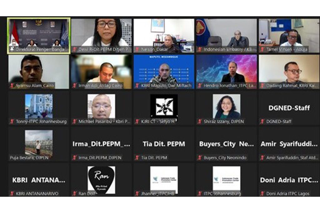 Direktur Pengembangan Ekspor Produk Manufaktur, Ni Made Ayu Marthini memimpin Sosialisasi Trade Expo Indonesia (TEI) 2022 yang ditujukan kepada kedutaan besar, konsulat jenderal, dan perwakilan perdagangan di wilayah Afrika secara daring pada Senin (1 Agt).