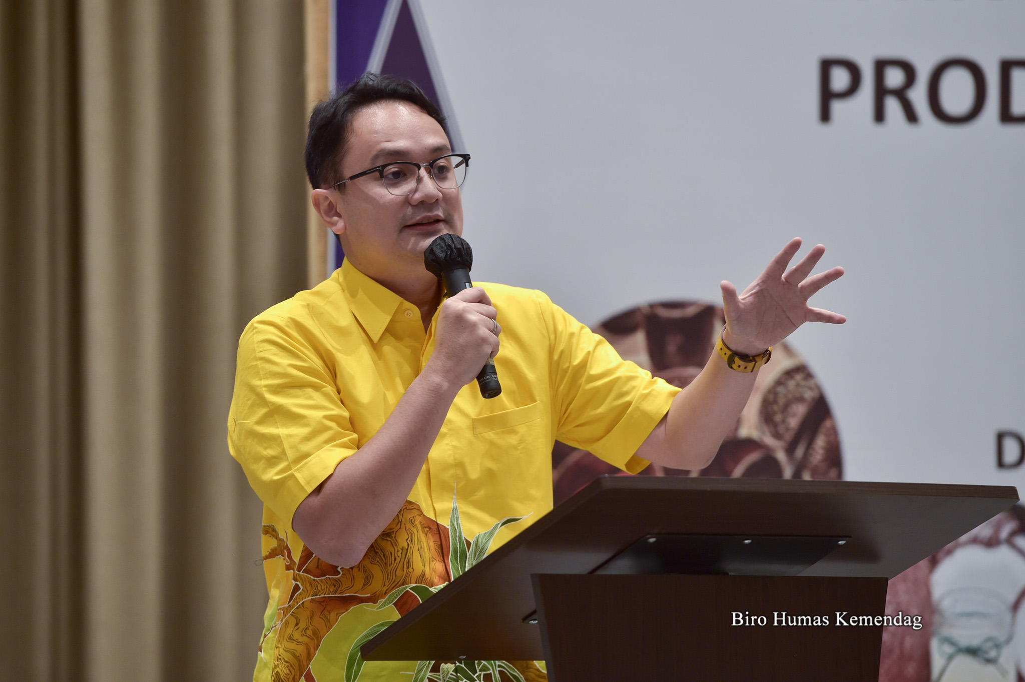 Wakil Menteri Perdagangan, Jerry Sambuaga membuka sekaligus memberikan sambutan dalam acara Klinik Produk Ekspor Unggulan Daerah dengan tema “Peningkatan Nilai Tambah dan Daya Saing Produk Pangan dan Makanan Olahan Orientasi Ekspor” yang berlangsung di Manado, Sulawesi Utara, Kamis (6 April).
