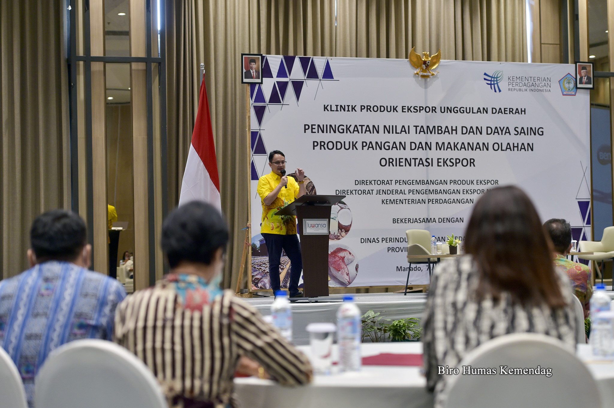 Wamendag dalam sambutannya mengatakan bahwa, Sulawesi Utara memiliki potensi yang sangat besar pada sektor makanan olahan. Acara klinik produk ekspor kali ini diharapkan dapat mendorong para pelaku usaha untuk meningkatkan kualitas serta daya saing ekspor produk pangan dan makanan olahan.