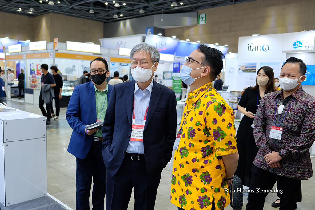 Wakil Menteri Perdagangan, Jerry Sambuaga mengunjungi Paviliun Indonesia pada Pameran Seoul Food 2022 hasil kerja sama Kementerian Perdagangan dengan Kedutaan Besar Republik Indonesia (KBRI) Seoul di Korea International Exhibition Center (KINTEX), Seoul, Korea Selatan, Rabu (8 Juni).