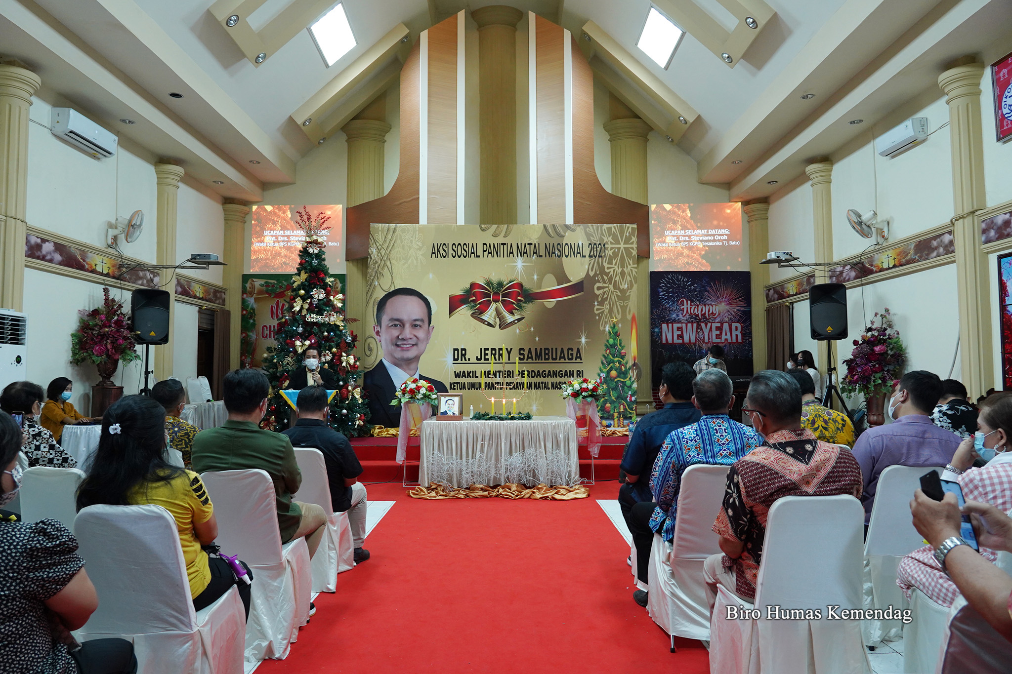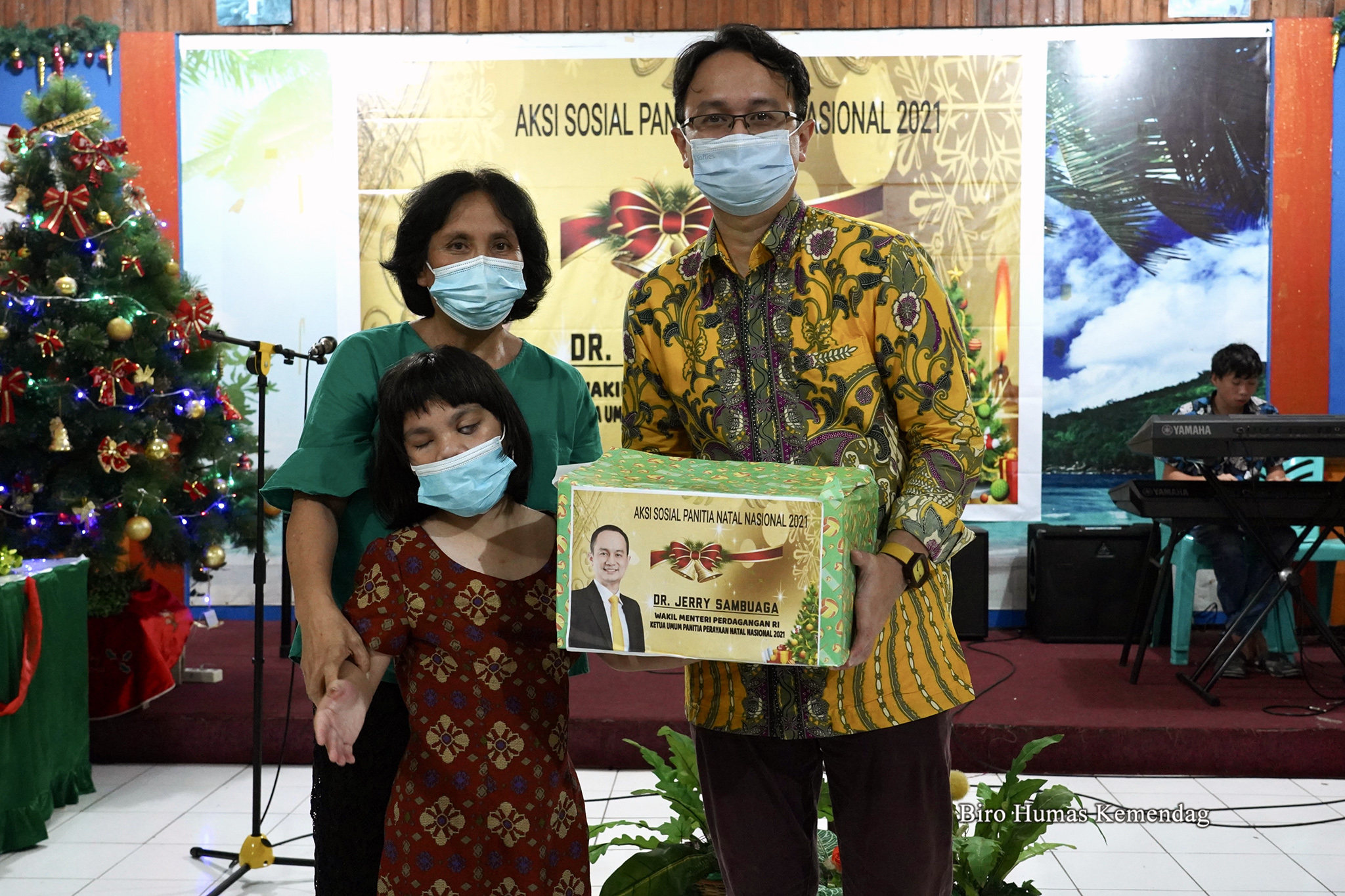 Wakil Menteri Perdagangan, Jerry Sambuaga melaksanakan rangkaian aksi sosial Panitia Natal Nasional 2021 di Manado, Sulawesi Utara, Kamis (16 Des).