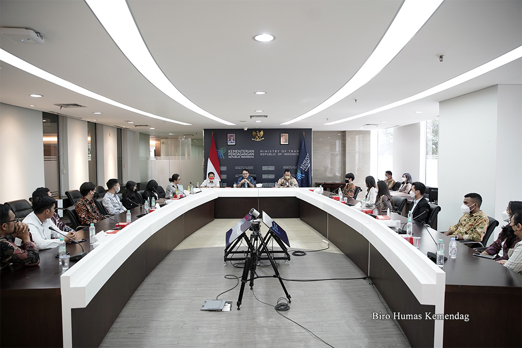 Wakil Menteri Perdagangan, Jerry Sambuaga menerima kunjungan mahasiswa Universitas Pelita Harapan (UPH) di Kantor Kementerian Perdagangan, Jakarta, Rabu (22 Juni).