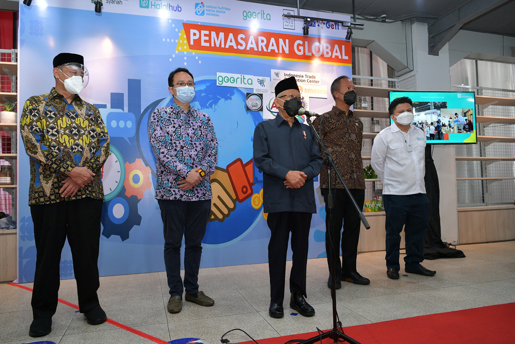 Wapres mengapresiasi kolaborasi yang telah dibangun Platform Digital Ekspor (PDEkspor) dan Komite Nasional Ekonomi dan Keuangan Syariah (KNEKS) untuk menjembatani UMKM agar produk-produknya dapat masuk dan bersaing dalam ekosistem halal global.