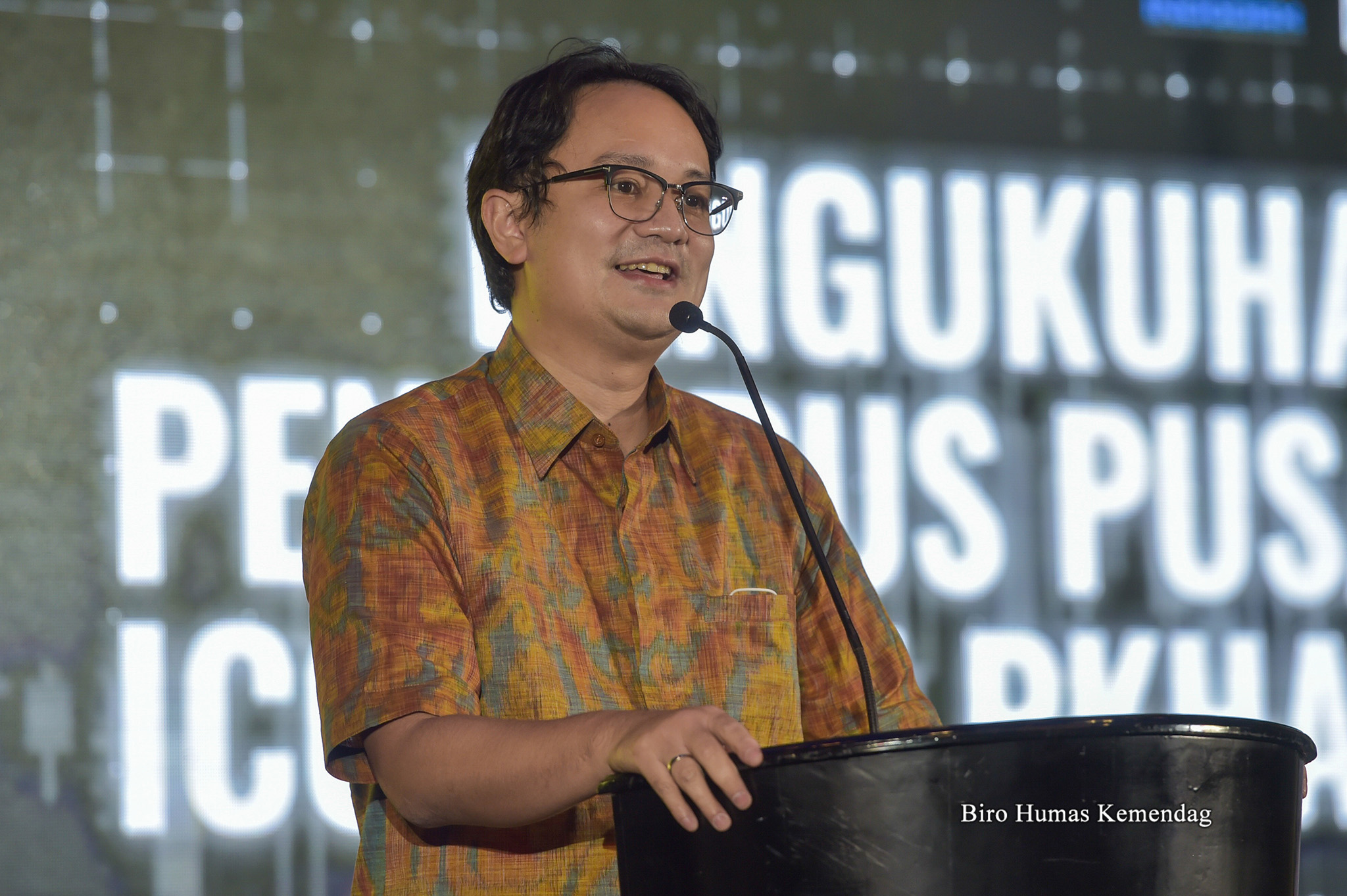 Wakil Menteri Perdagangan, Jerry Sambuaga memberikan sambutan dalam acara Pengukuhan Pengurus Pusat Indonesia Crypto Consumer Association (ICCA) dan Perkumpulan Konsultan Hukum Aset Kripto Indonesia (PKHAKI) yang berlangsung di Hotel Indonesia Kempinski, Jakarta, Jumat (1 April).