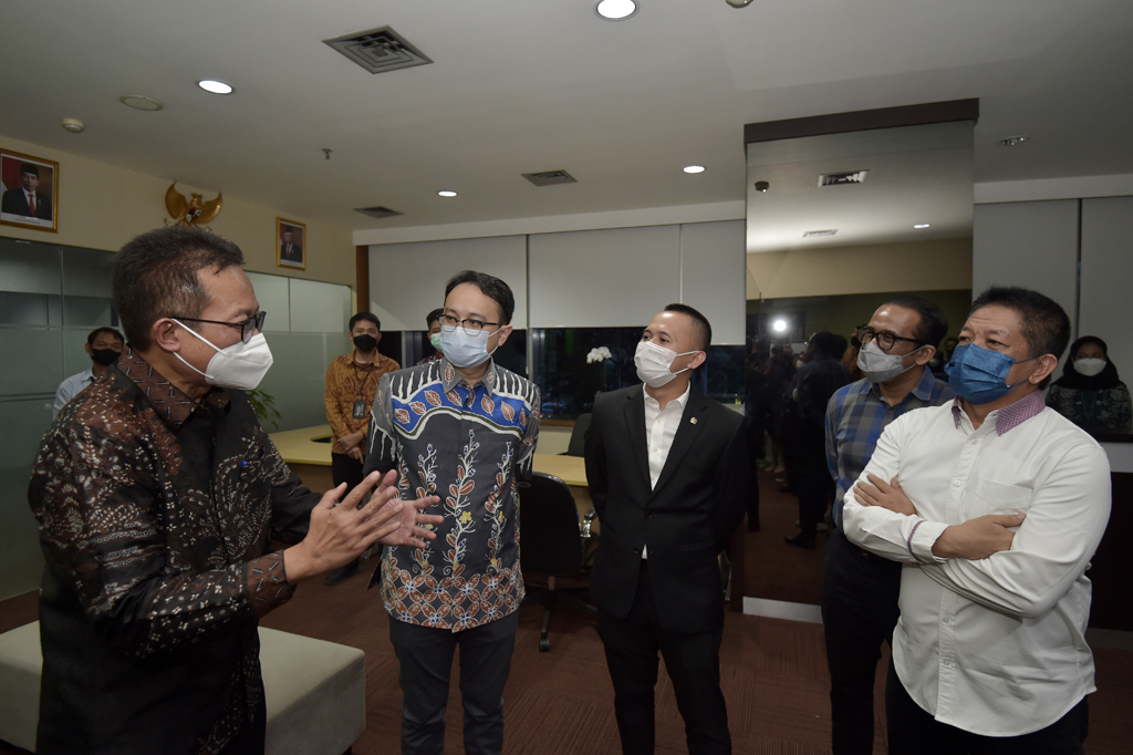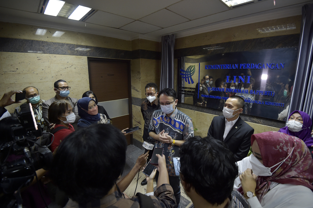 Wakil Menteri Perdagangan, Jerry Sambuaga bersama Plt Kepala Badan Pengawas Perdagangan Berjangka Komoditi, Didid Noordiatmoko serta Anggota Komisi VI DPR RI, Mufti Anam meresmikan Pusat Bantuan Layanan Informasi Badan Pengawas Perdagangan Berjangka Komoditi (LINI Bappebti) yang berlangsung di Kantor Bappebti, Jakarta, Kamis (23 Juni).