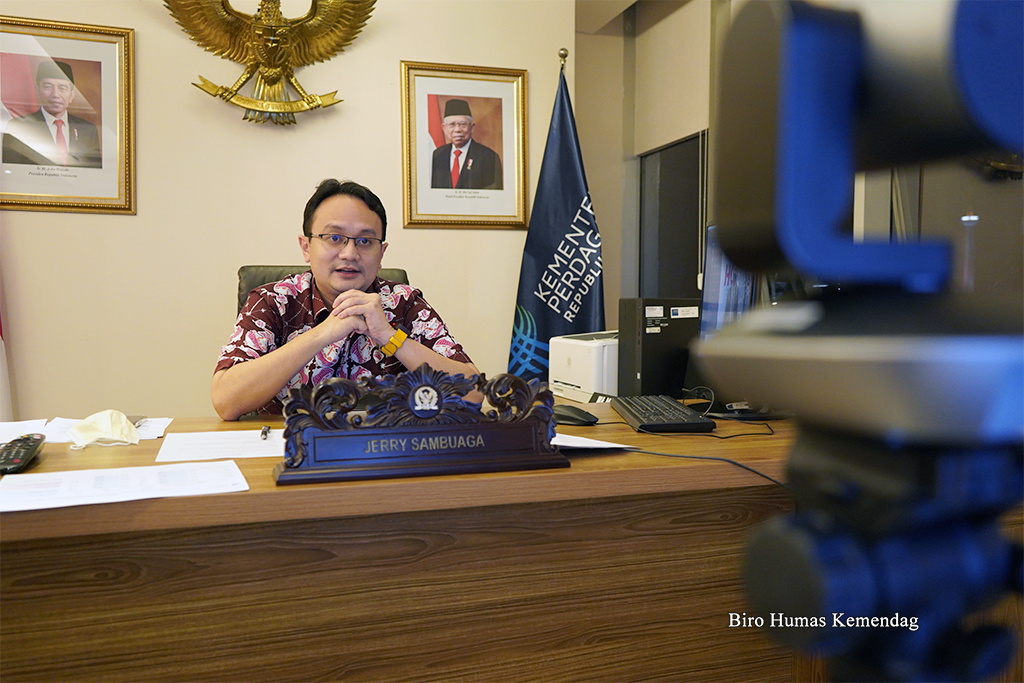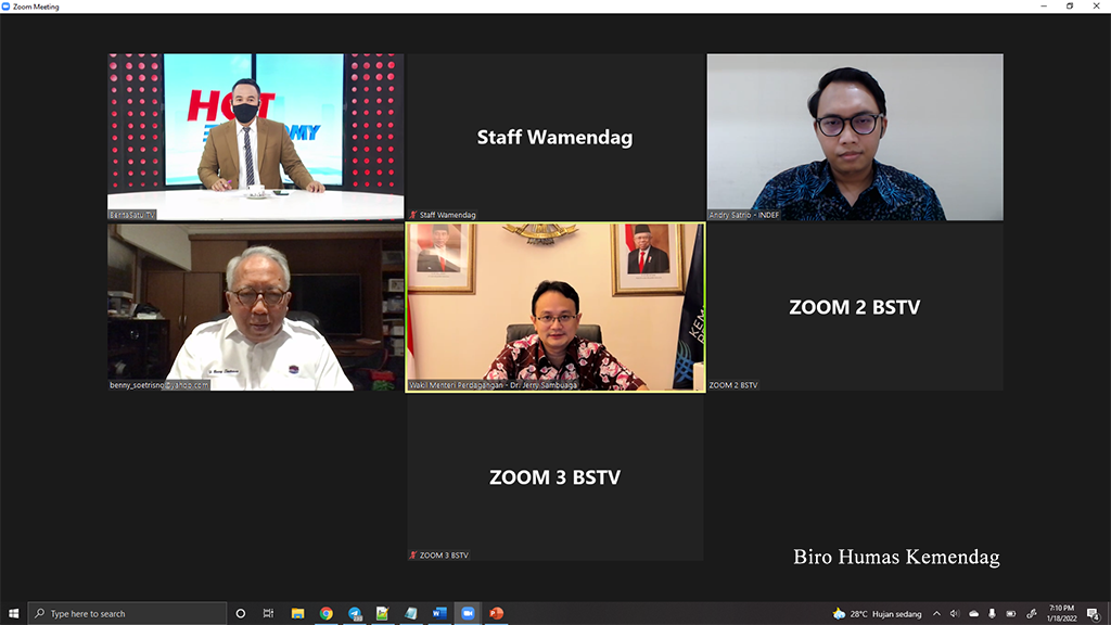 Wakil Menteri Perdagangan, Jerry Sambuaga menjadi narasumber pada program Hot Economy di Berita Satu TV secara virtual di Jakarta, Selasa (18 Jan).