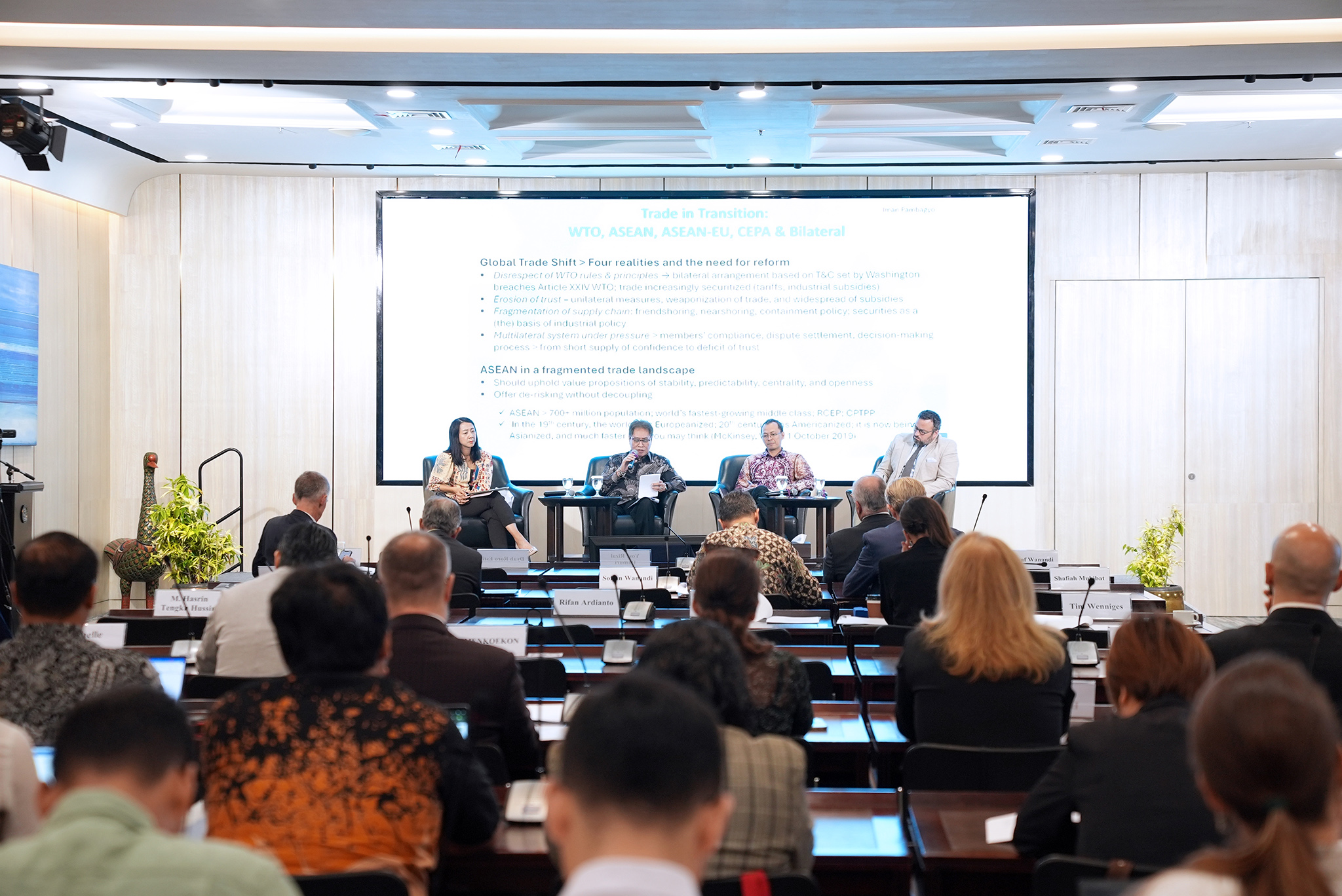 Dalam forum ini, dilakukan diskusi panel yang dihadiri Kepala Pusat Kebijakan Perdagangan Internasional Kemendag, Rifan Ardianto. Diskusi menyoroti implikasi bagi masa depan tata kelola perdagangan global serta bagaimana Indonesia, Eropa, dan ASEAN dapat menavigasi transformasi ini untuk memajukan kerja sama ekonomi yang lebih tangguh dan inklusif.