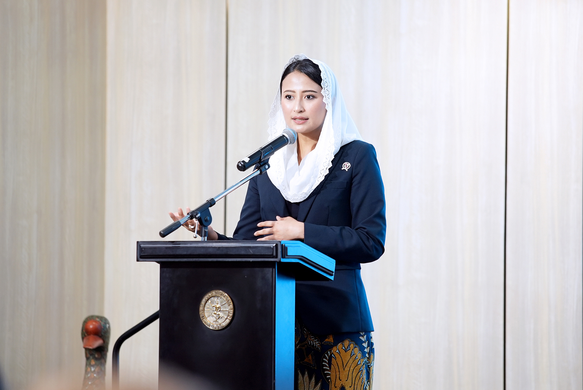 Wakil Menteri Perdagangan RI, Dyah Roro Esti memberikan sambutan kunci pada acara The 9th KAS-CSIS Germany-Indonesia Strategic Dialogue yang diselenggarakan di Auditorium CSIS Gedung Pakarti Centre, Jakarta, Selasa (4 Nov).