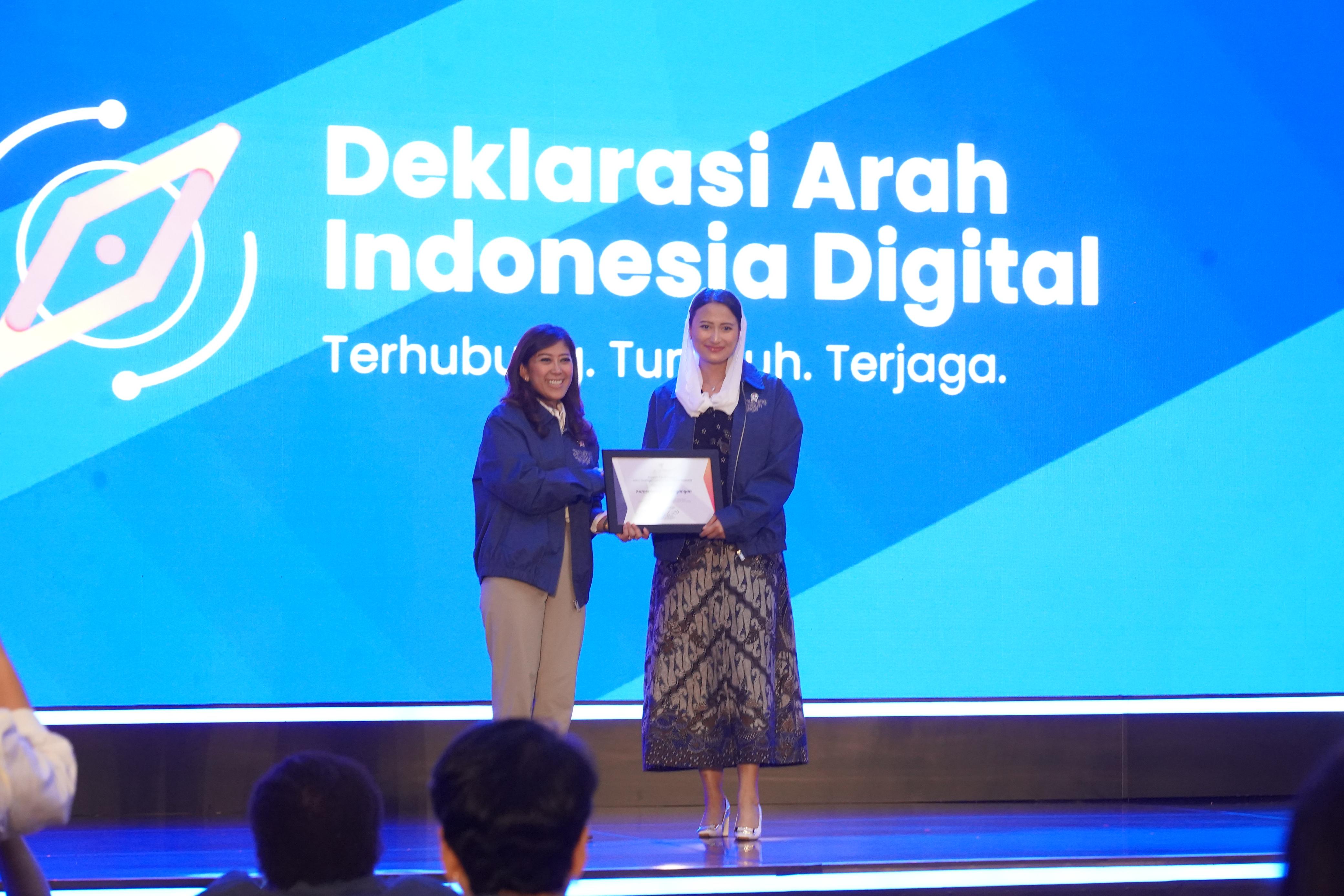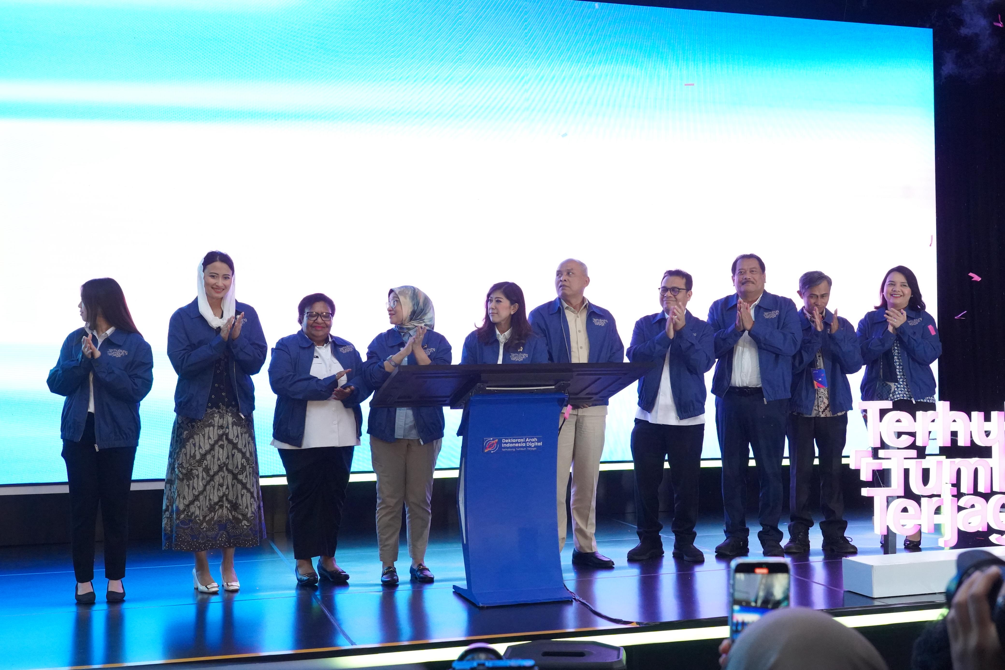 Acara Deklarasi Arah Indonesia Digital mengusung tema “Terhubung, Tumbuh, Terjaga”, menggambarkan harapan agar konektivitas yang merata dapat memperkuat pertumbuhan ekonomi digital sekaligus menciptakan ruang digital yang aman.