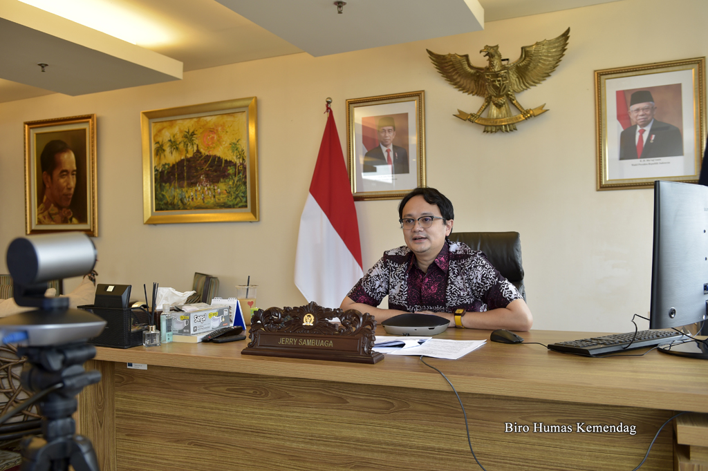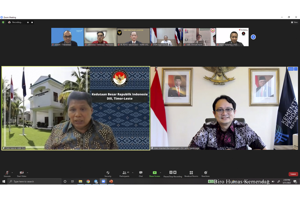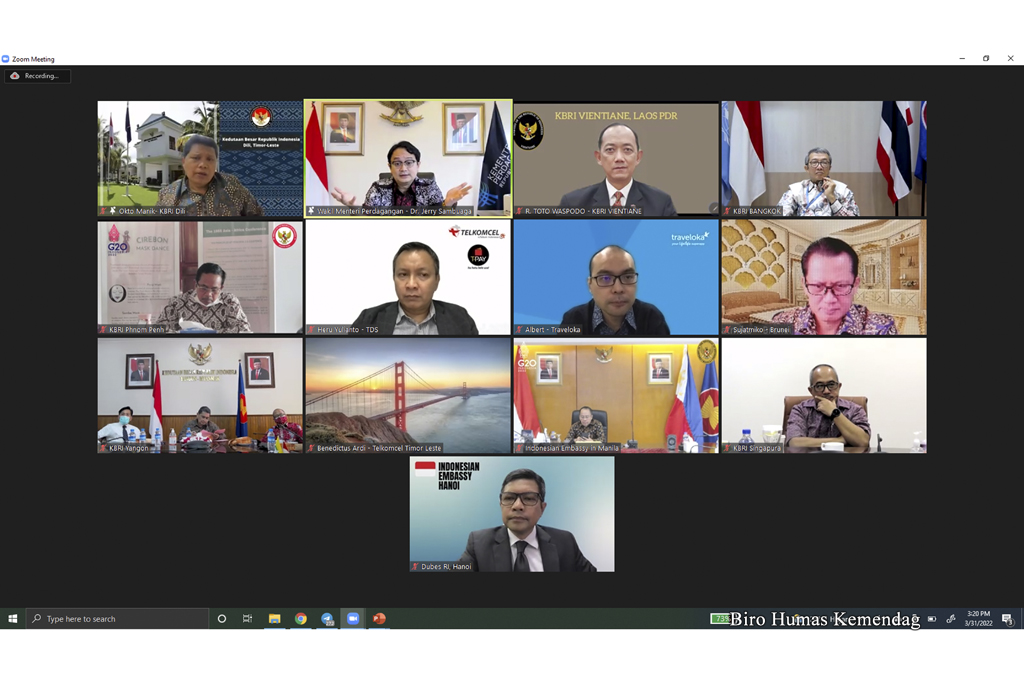 Wakil Menteri Perdagangan, Jerry Sambuaga menjadi narasumber dalam acara Forum Brainstorming Kepala Perwakilan RI Se-Asia Tenggara yang berlangsung secara virtual di Jakarta, Kamis (31 Maret).