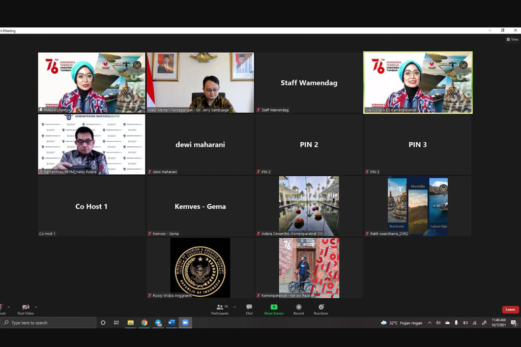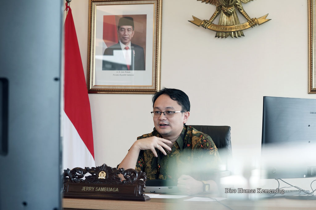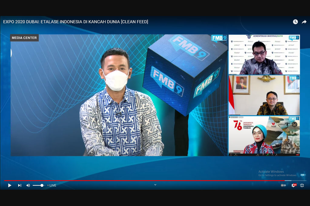 Wakil Menteri Perdagangan, Jerry Sambuaga menjadi narasumber pada Forum Merdeka Barat 9 (FMB9) dengan tema "Expo 2020 Dubai: Etalase Indonesia di Kancah Dunia" secara virtual di Jakarta, Kamis (7 Okt).