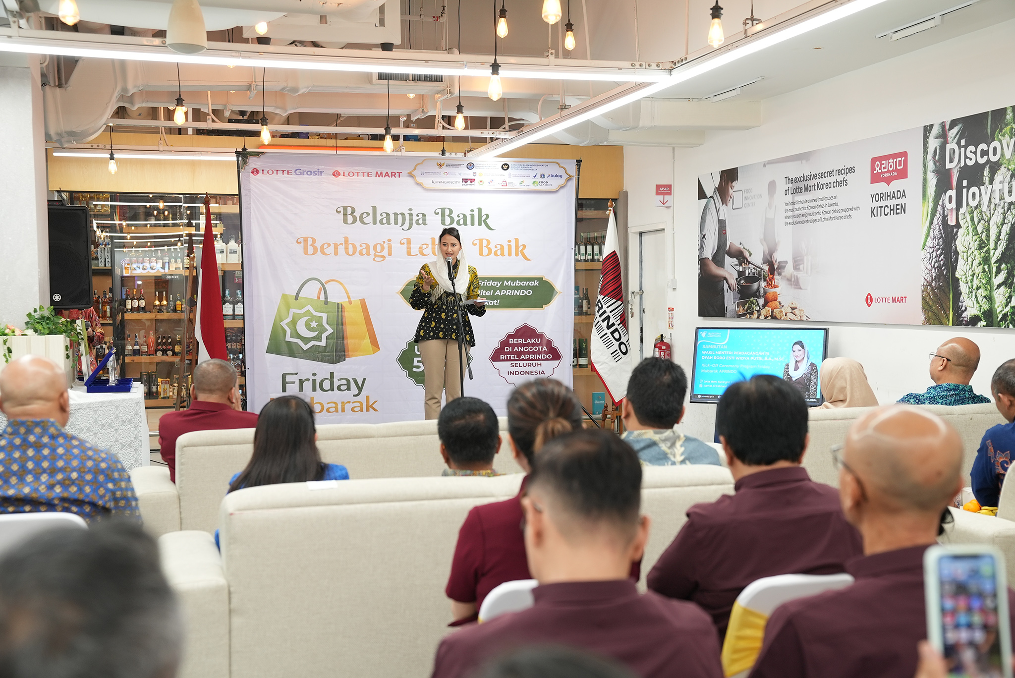 Wakil Menteri Perdagangan, Dyah Roro Esti menghadiri Kick Off Ceremony Friday Mubarak 2026 yang diselenggarakan oleh Asosiasi Pengusaha Ritel Indonesia (APRINDO) di Lotte Mart Kuningan City, Jakarta, Jumat (13 Feb).
