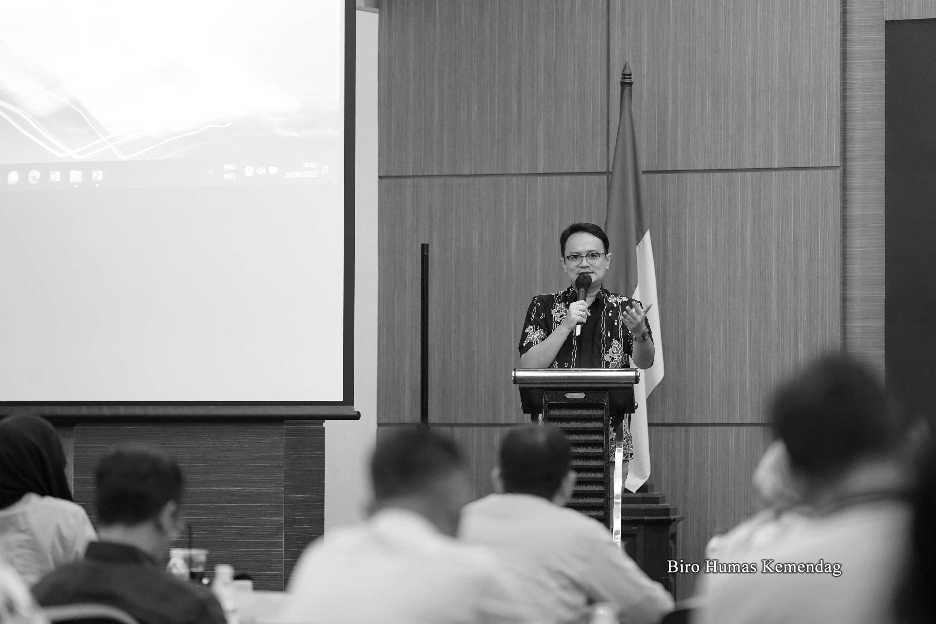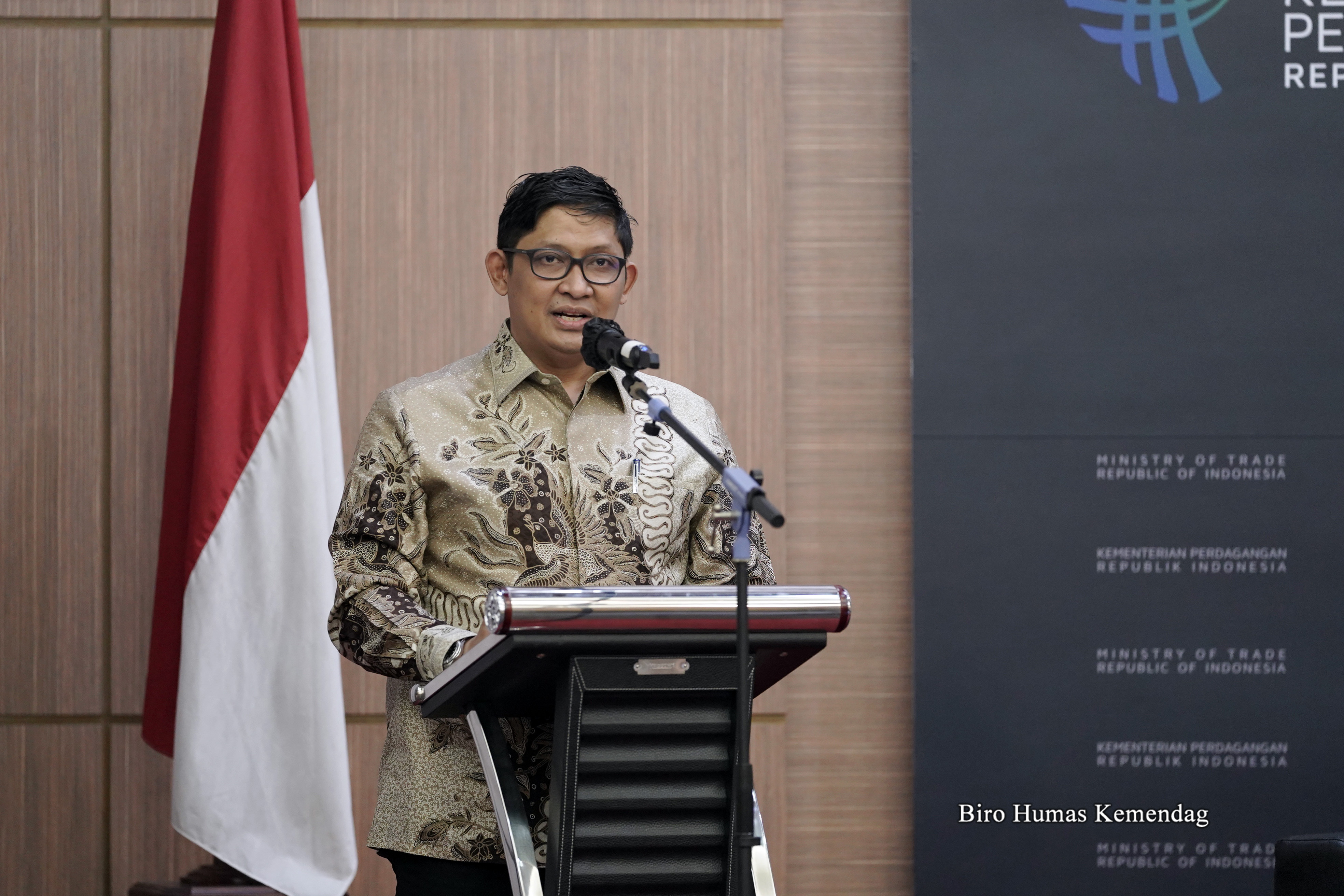 Wakil Menteri Perdagangan, Jerry Sambuaga, memberikan sambutan pada acara Peningkatan Capacity Building Sumber Daya Manusia Ekspor yang berlangsung di Pusat Pelatihan SDM Ekspor dan Jasa Perdagangan (PPEJP), Jakarta, Jumat (26 Agt).