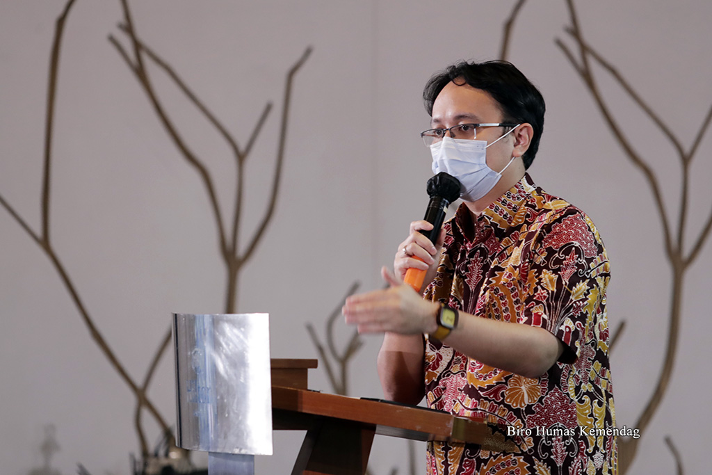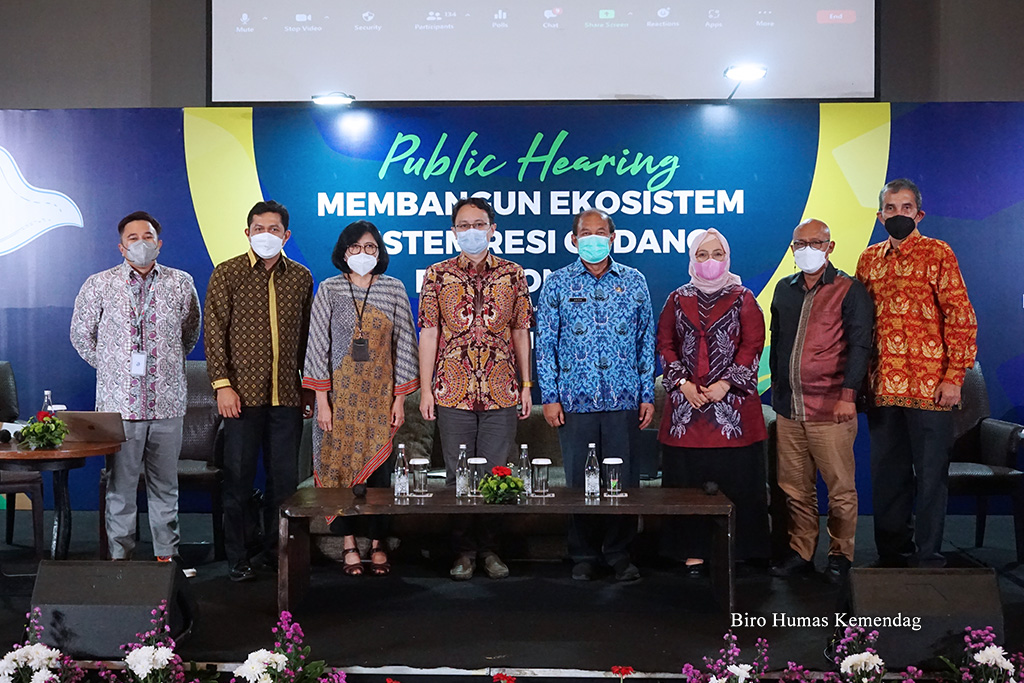 Wakil Menteri Perdagangan, Jerry Sambuaga memberikan sambutan pada acara Public Hearing “Membangun Ekosistem Sistem Resi Gudang di Indonesia” yang digelar secara hibrida di Bandung, Jumat (17 Sep). Kegiatan ini diselenggarakan oleh Kementerian Perdagangan bekerja sama dengan PT Kliring Berjangka Indonesia (KBI).