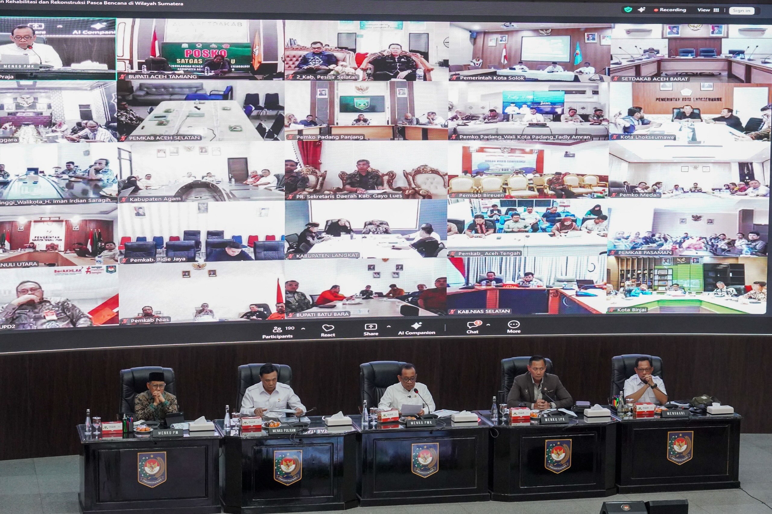 Dalam Rakor ini, Menteri Dalam Negeri sekaligus Ketua Tim Pelaksana, Tito Karnavian memaparkan priotitas tugas yang harus dikerjakan Satgas Percepatan Rehabilitasi dan Rekontruksi Pascabencana Sumatra salah satunya di bidang ekonomi.