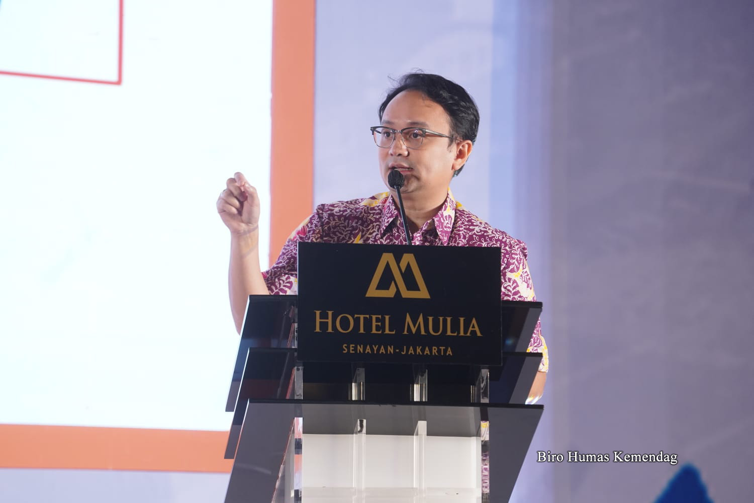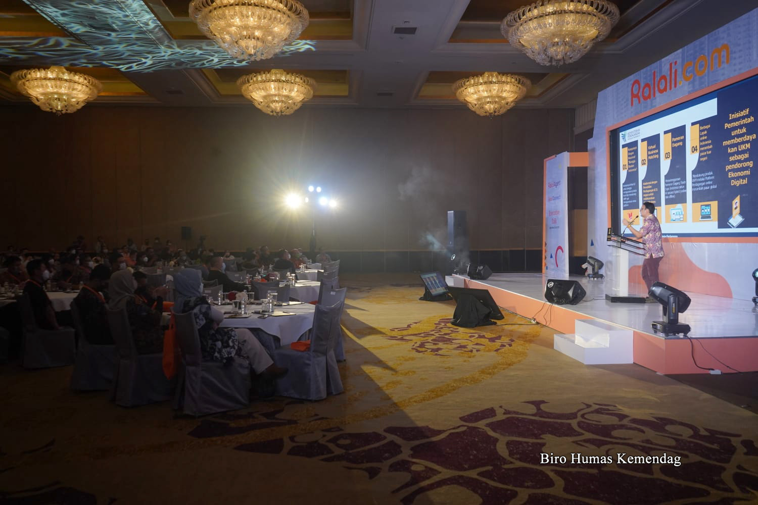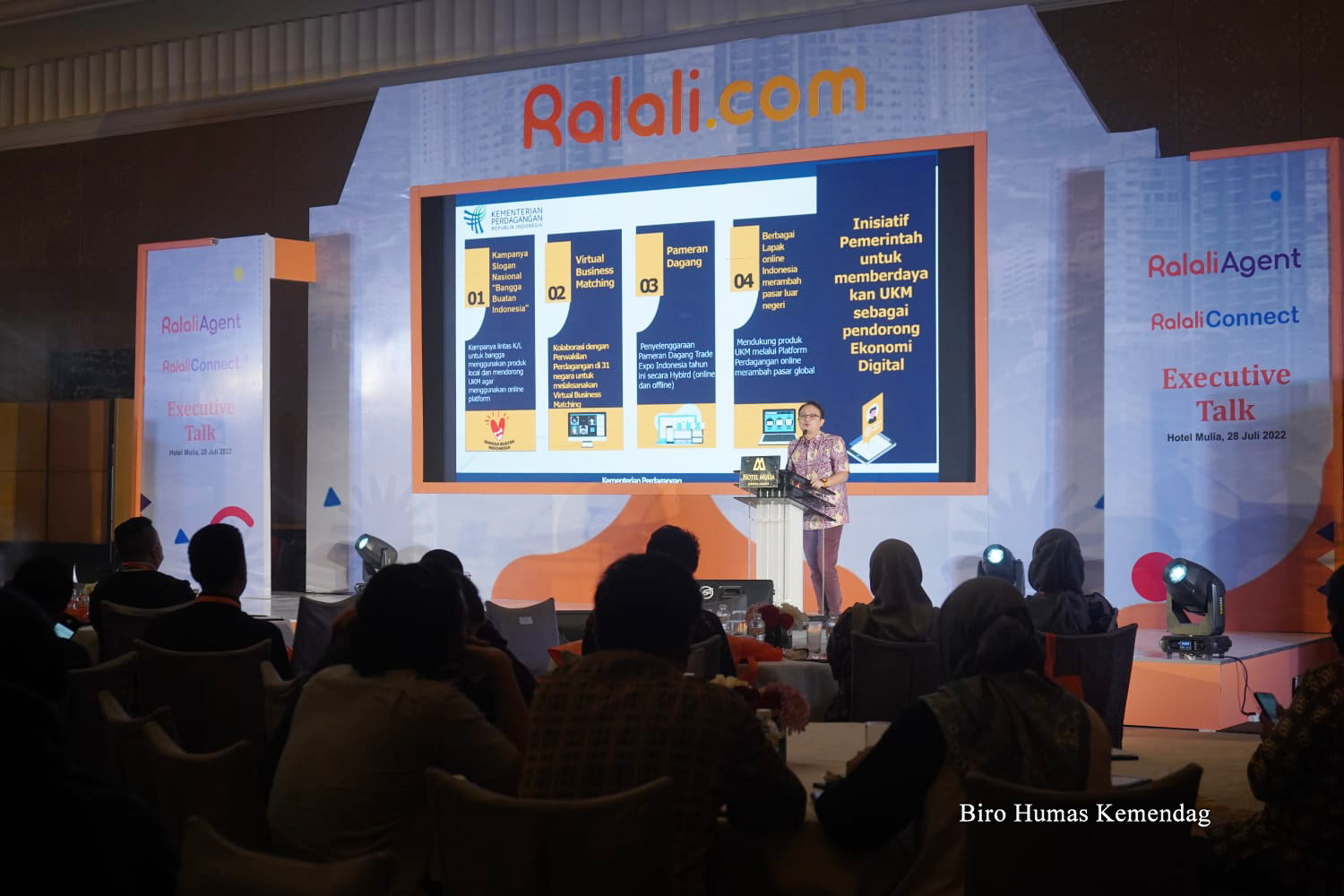 Wakil Menteri Perdagangan, Jerry Sambuaga memberikan sambutan pada Ralali Executive Talk “Collaboration Growth in Challenging Time” yang dilaksanakan di Hotel Mulia, Jakarta, Kamis (28 Juli).