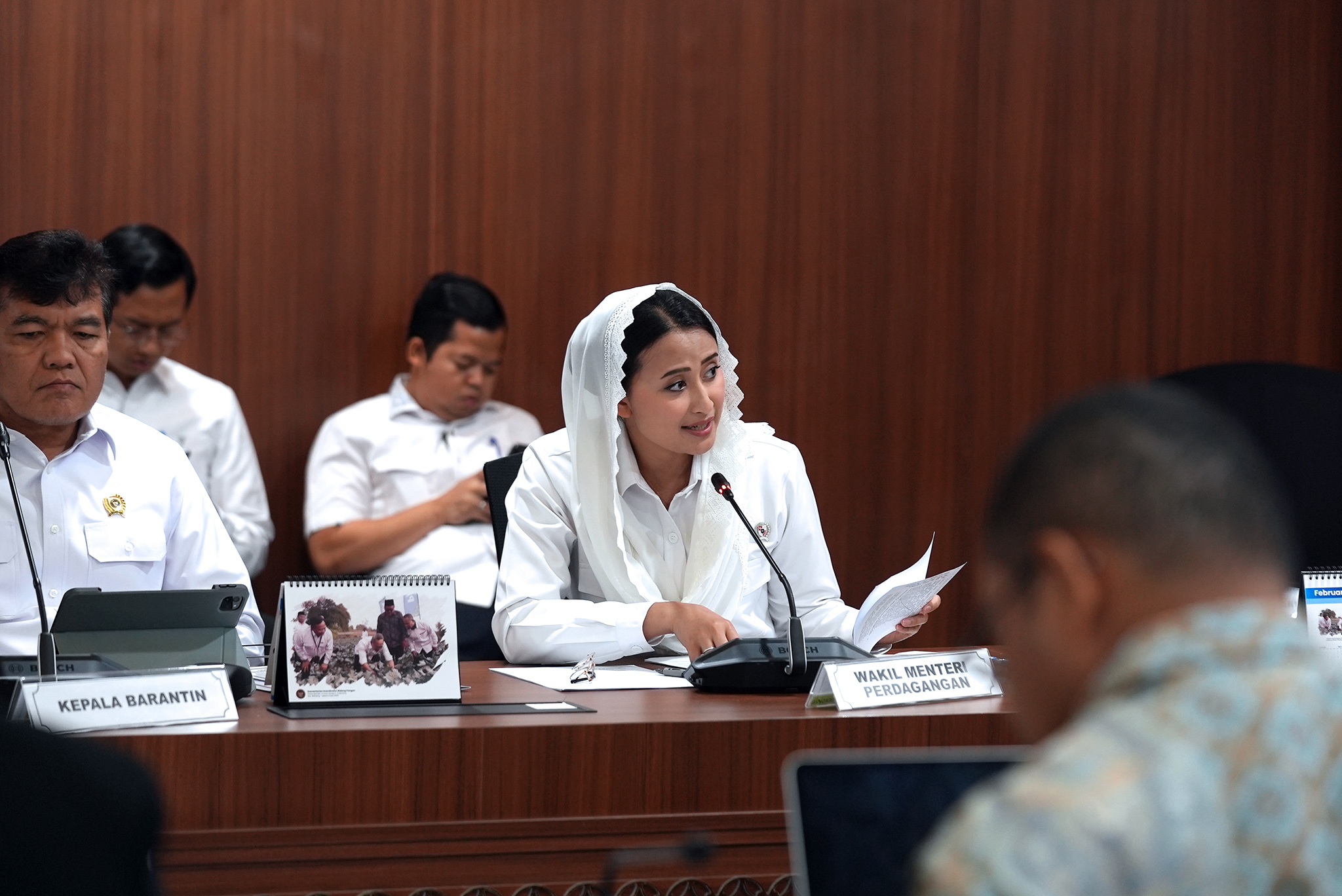 Wakil Menteri Perdagangan, Dyah Roro Esti menghadiri Rapat Koordinasi Terbatas (Rakortas) Kementerian Koordinator bidang Pangan di Jakarta, Senin, 23 (Feb). Rapat tersebut dipimpin oleh Menteri Koordinator Bidang Pangan, Zulkifli Hasan.
